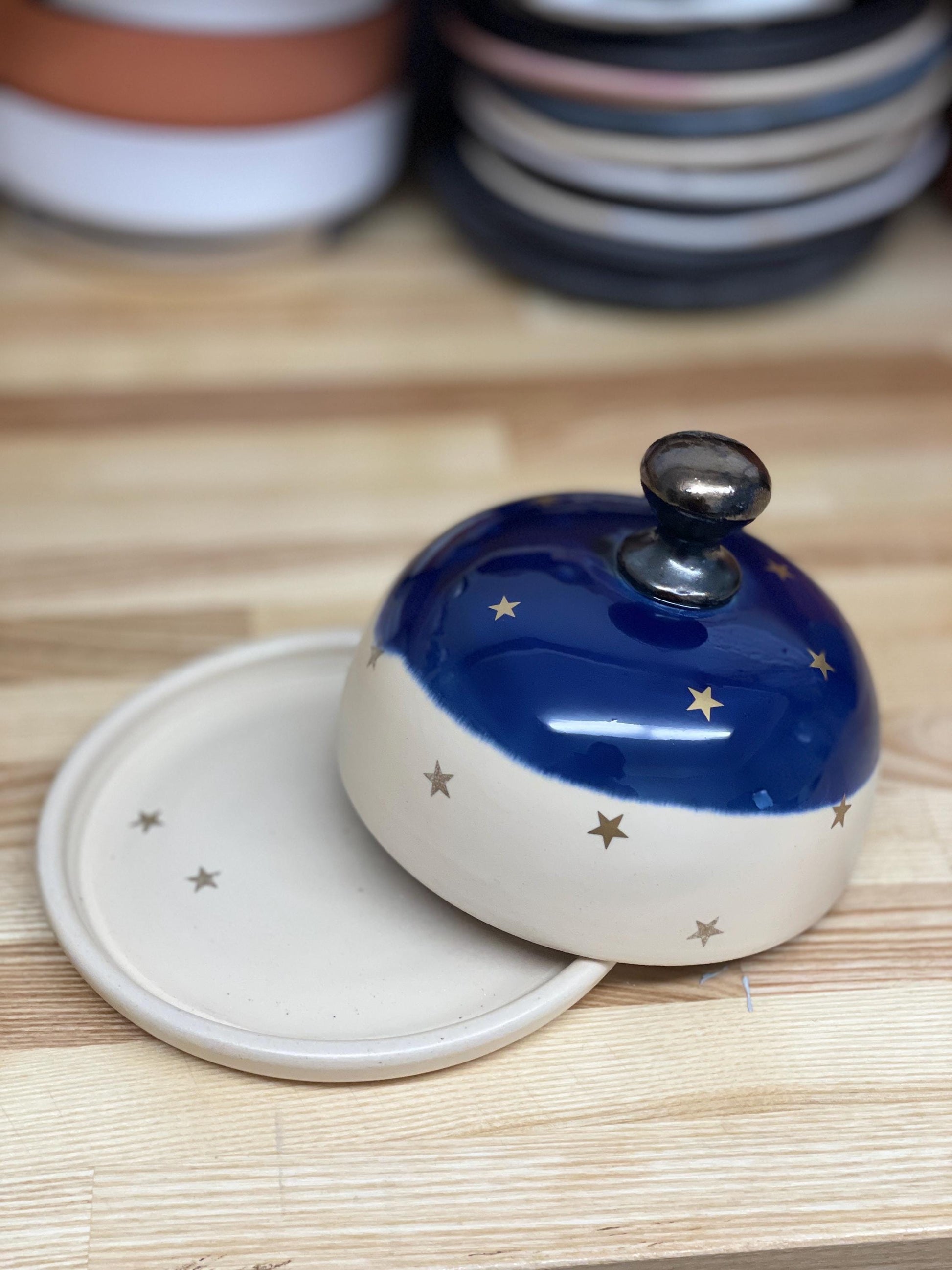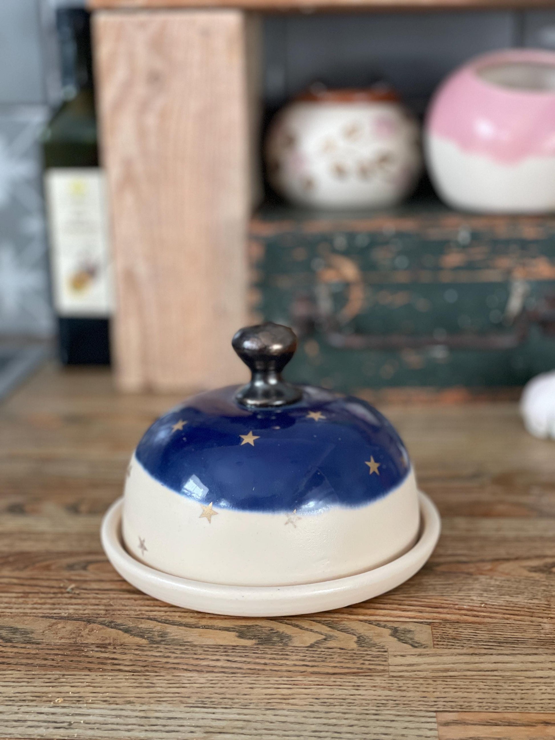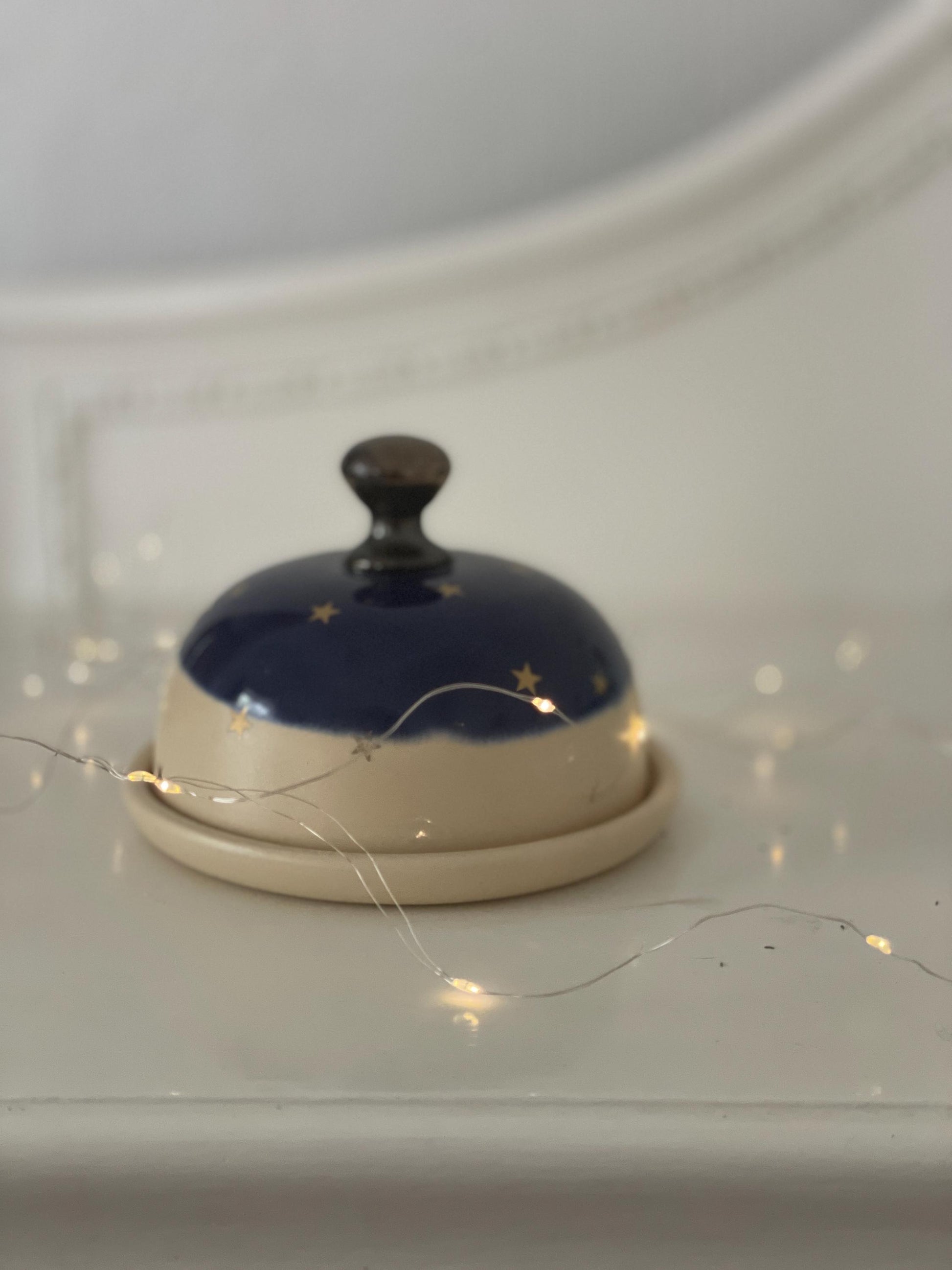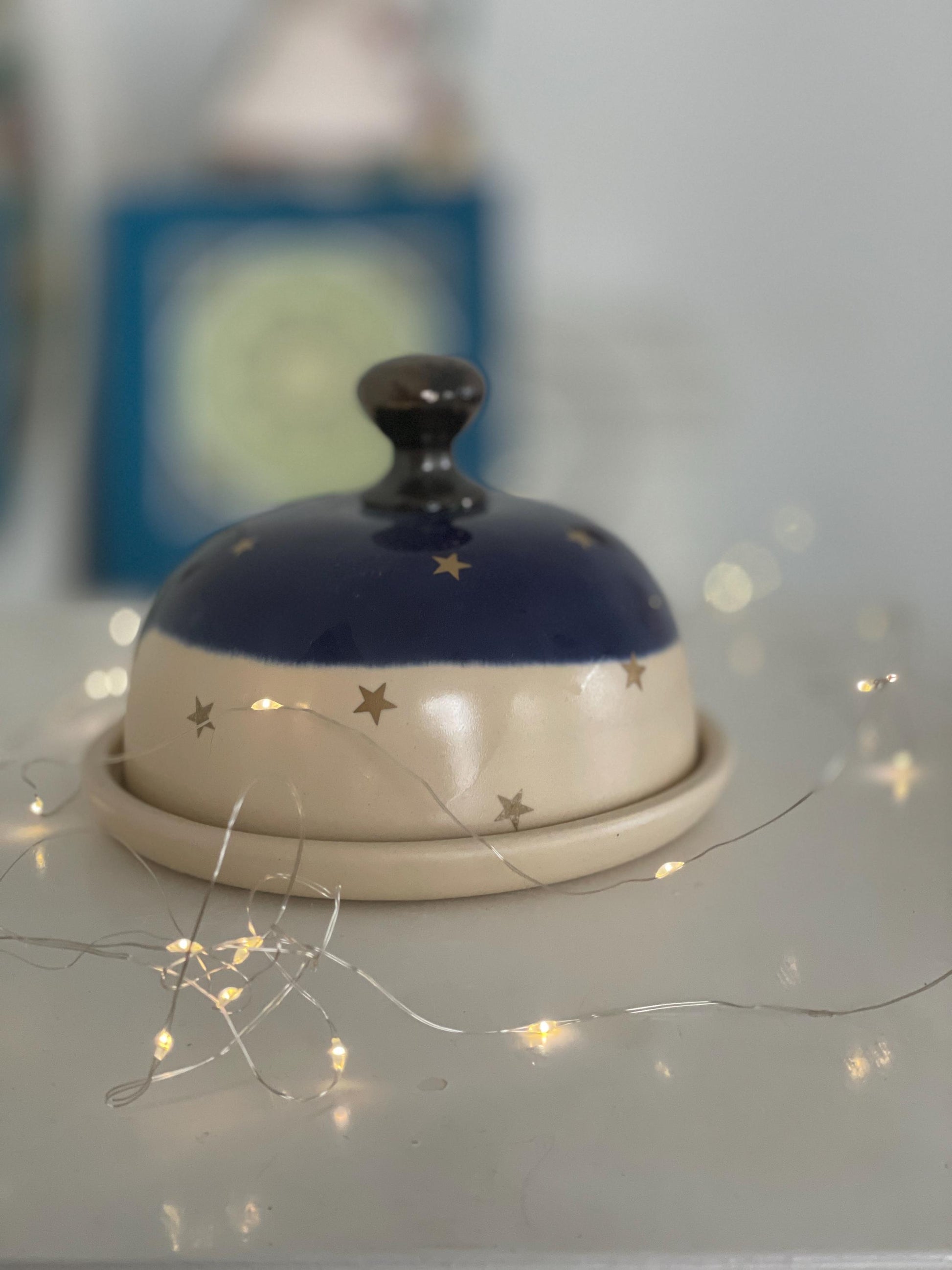 Klasiskais sviesta trauks ar paceļamu vāciņu. Der mūsu standarta sviesta izmēram, bet lieliski noder arī sieram.