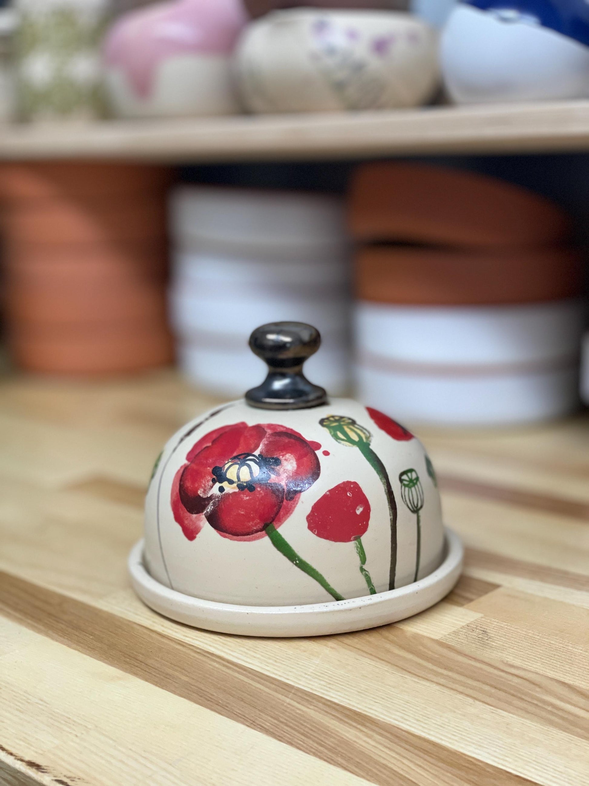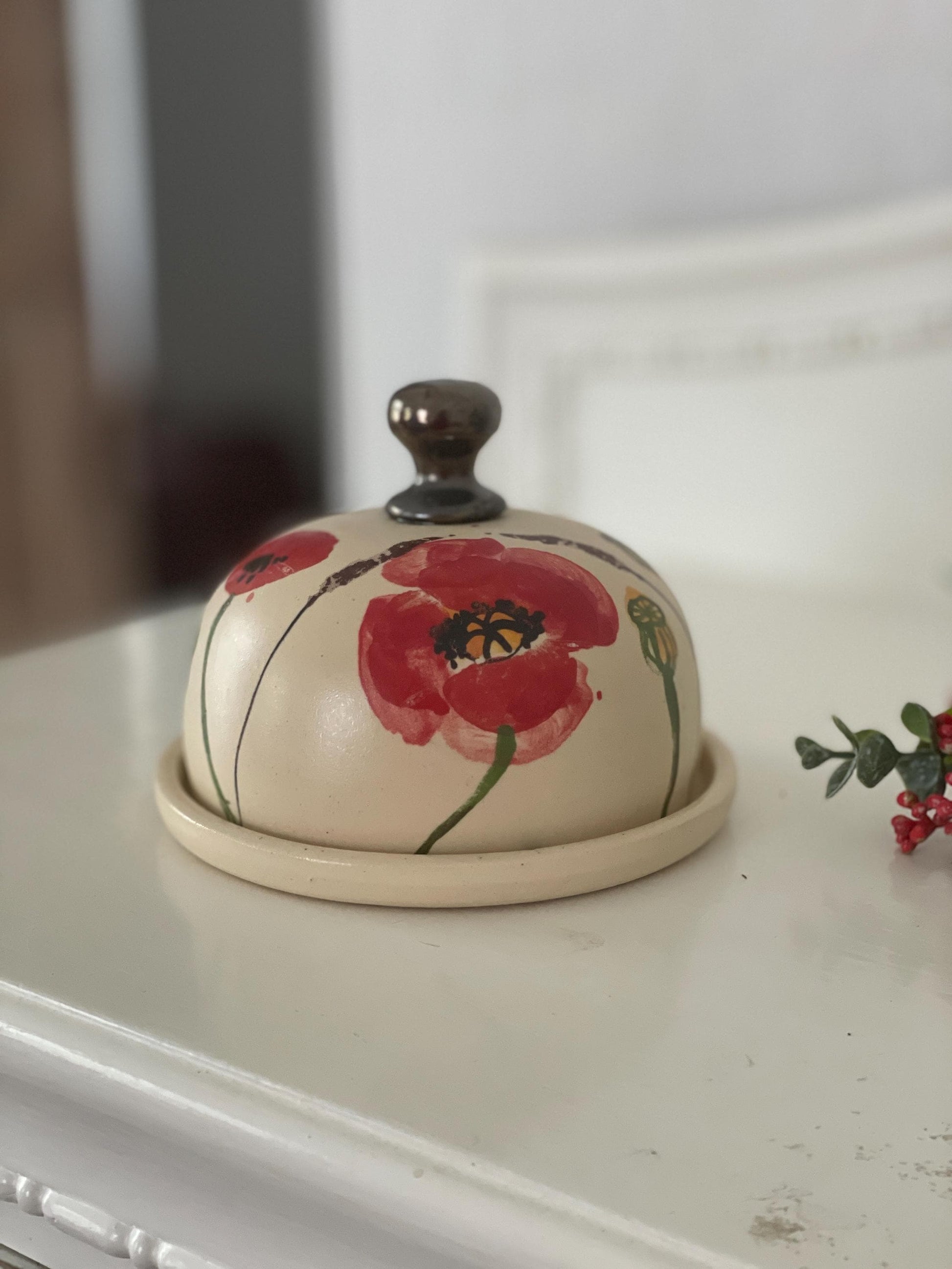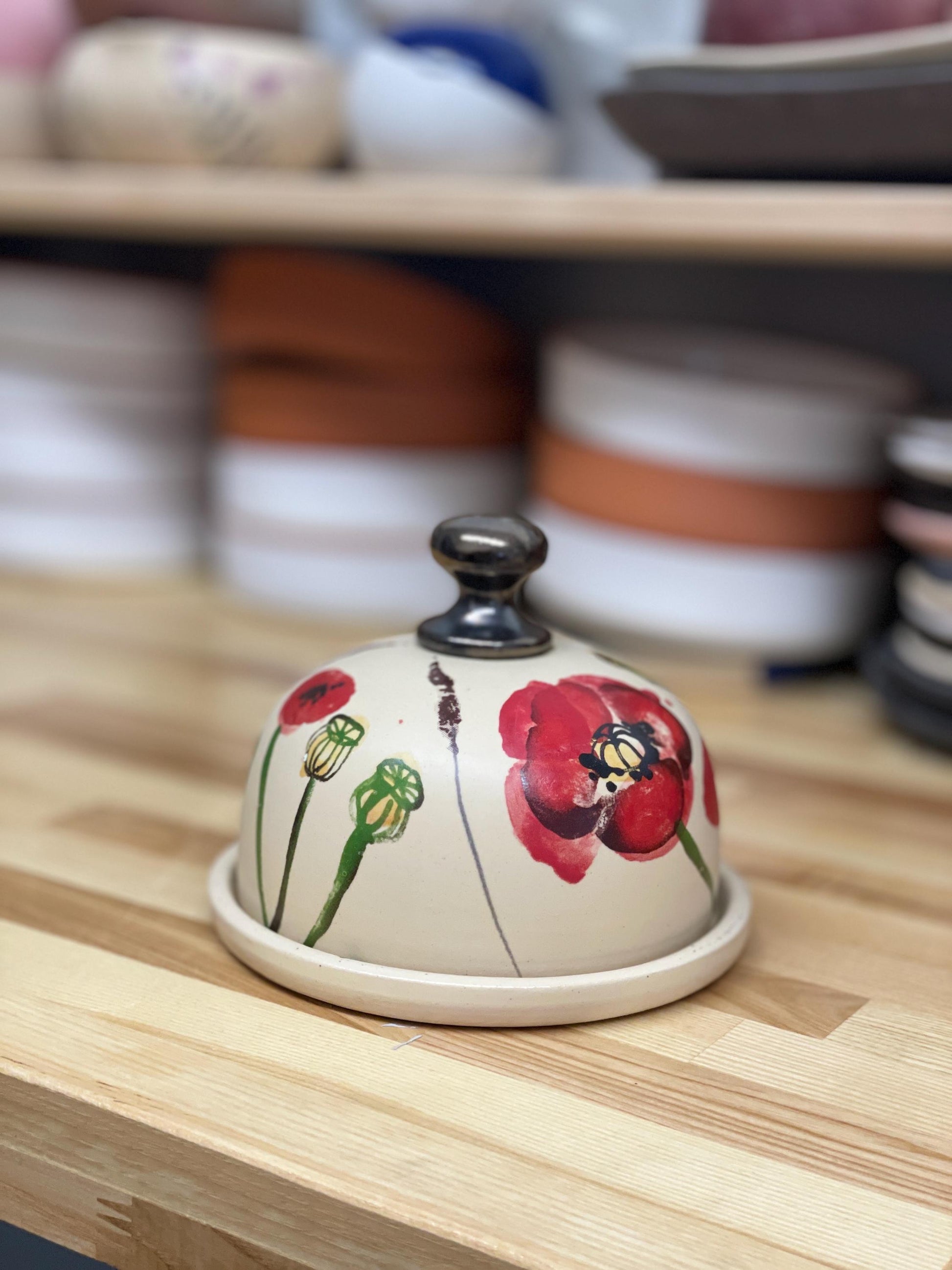 Klasiskais sviesta trauks ar paceļamu vāciņu. Der mūsu standarta sviesta izmēram, bet lieliski noder arī sieram.
