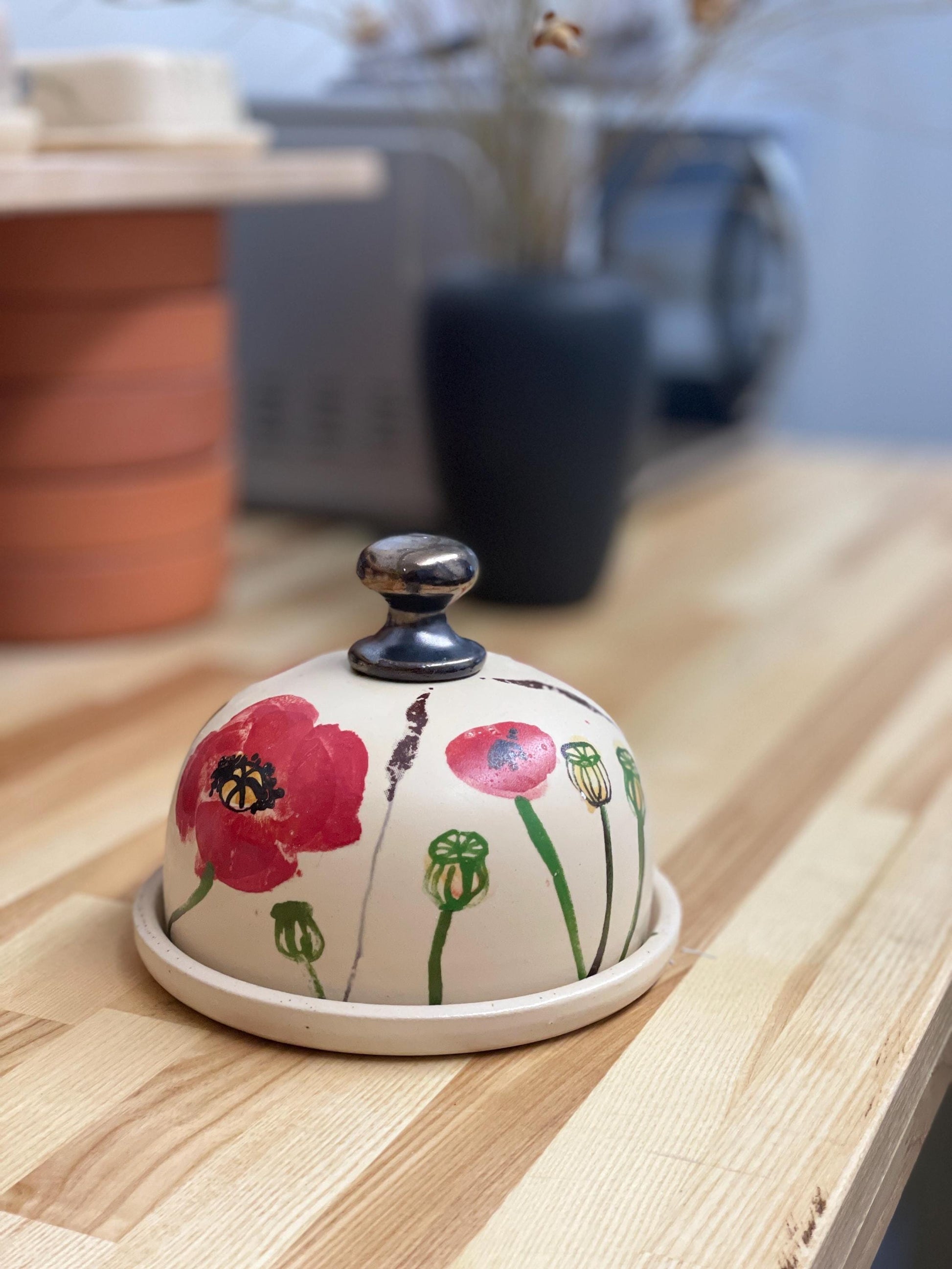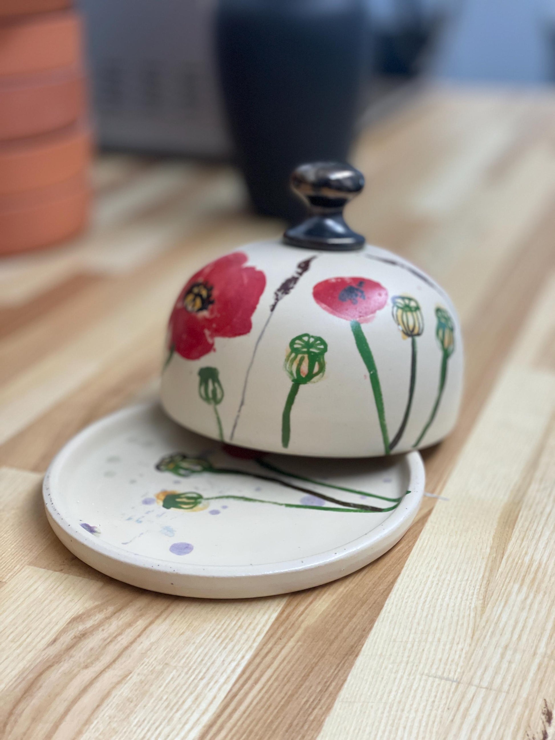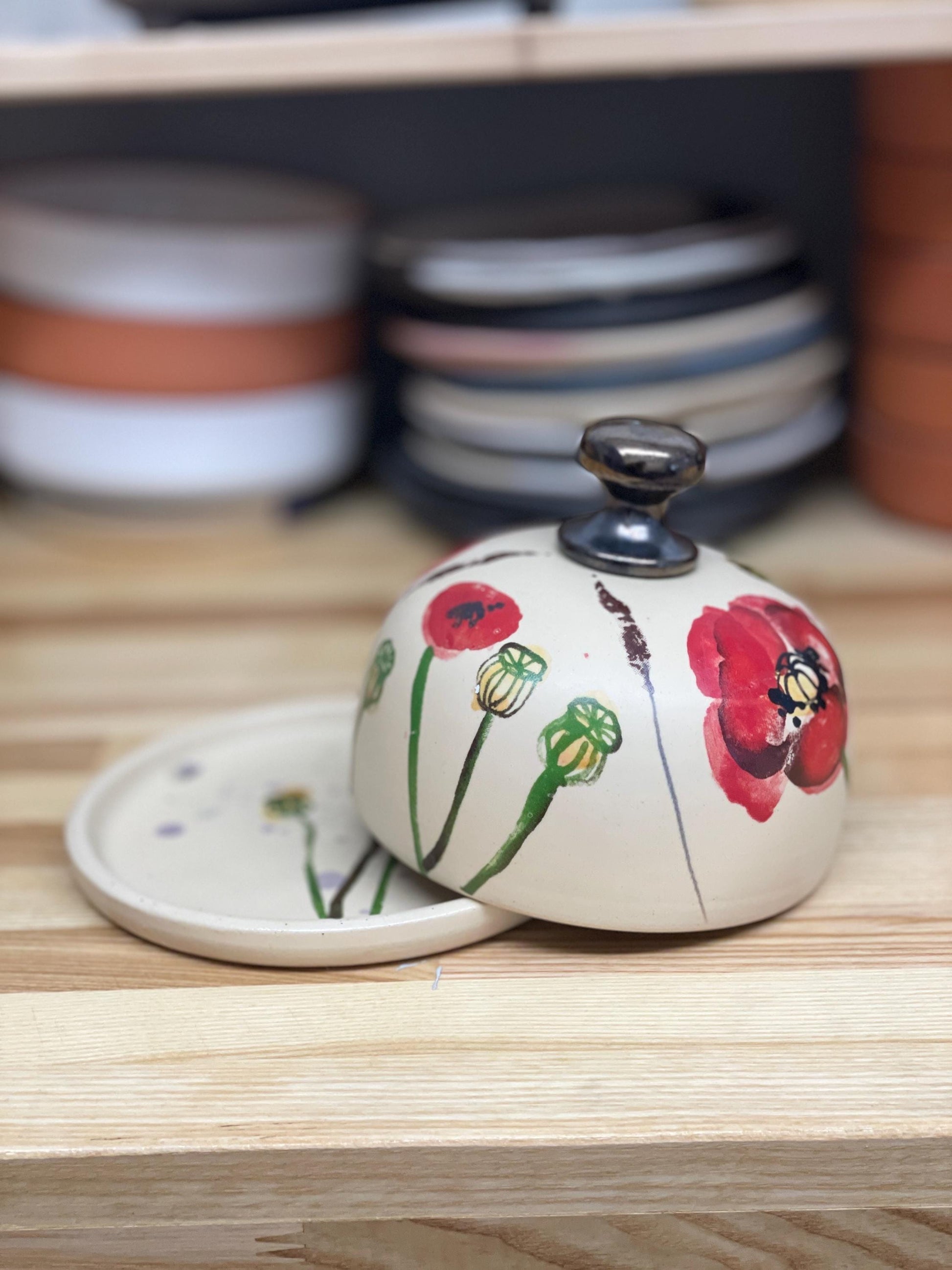 Klasiskais sviesta trauks ar paceļamu vāciņu. Der mūsu standarta sviesta izmēram, bet lieliski noder arī sieram.