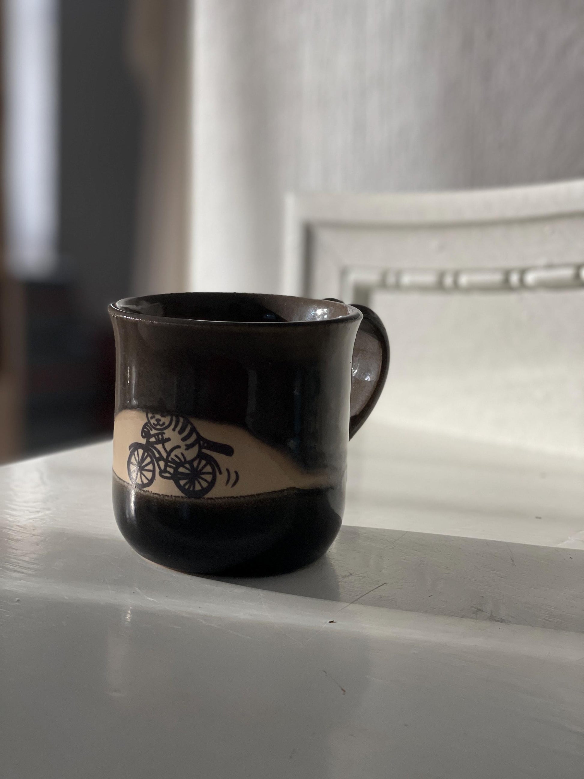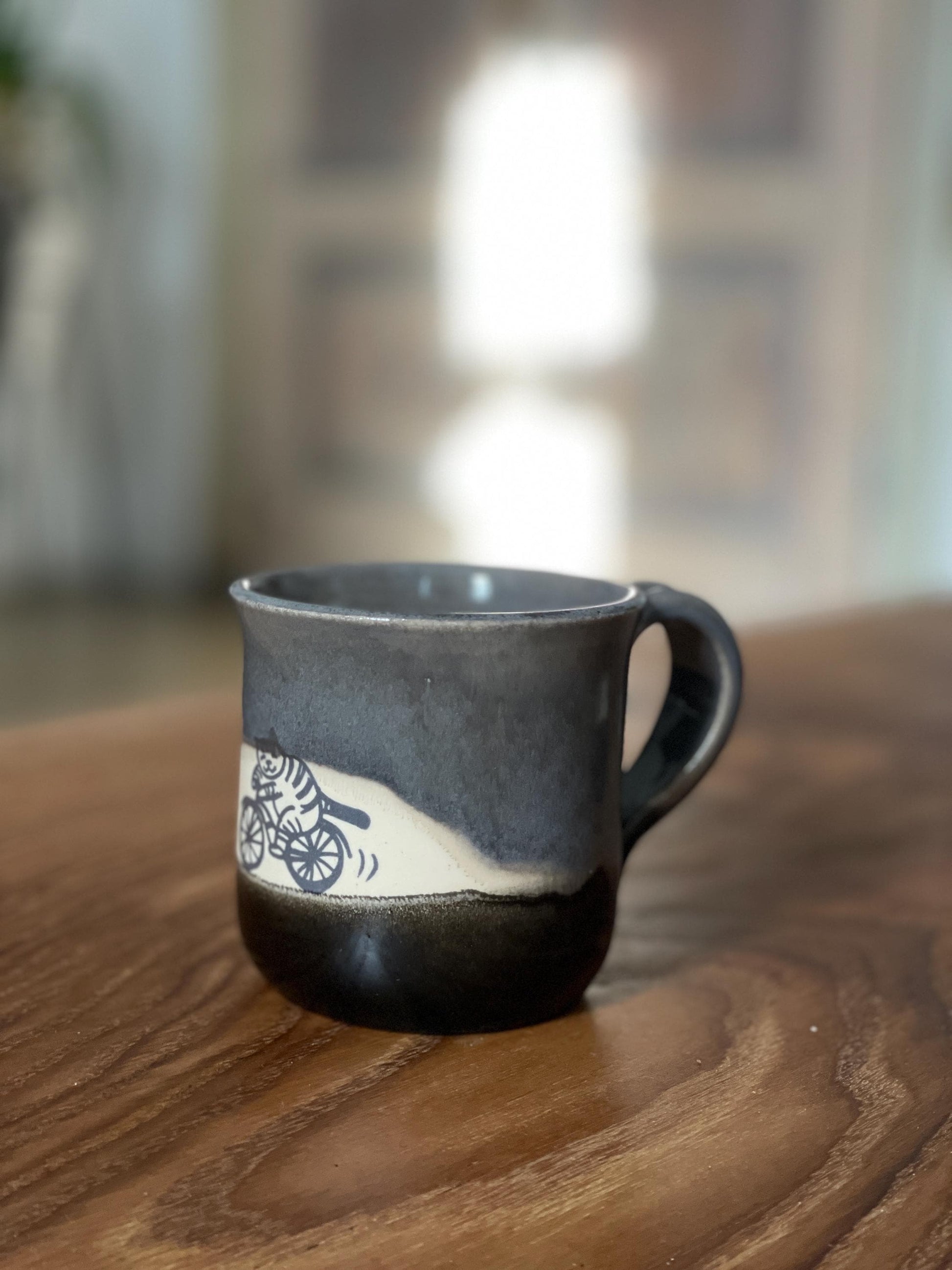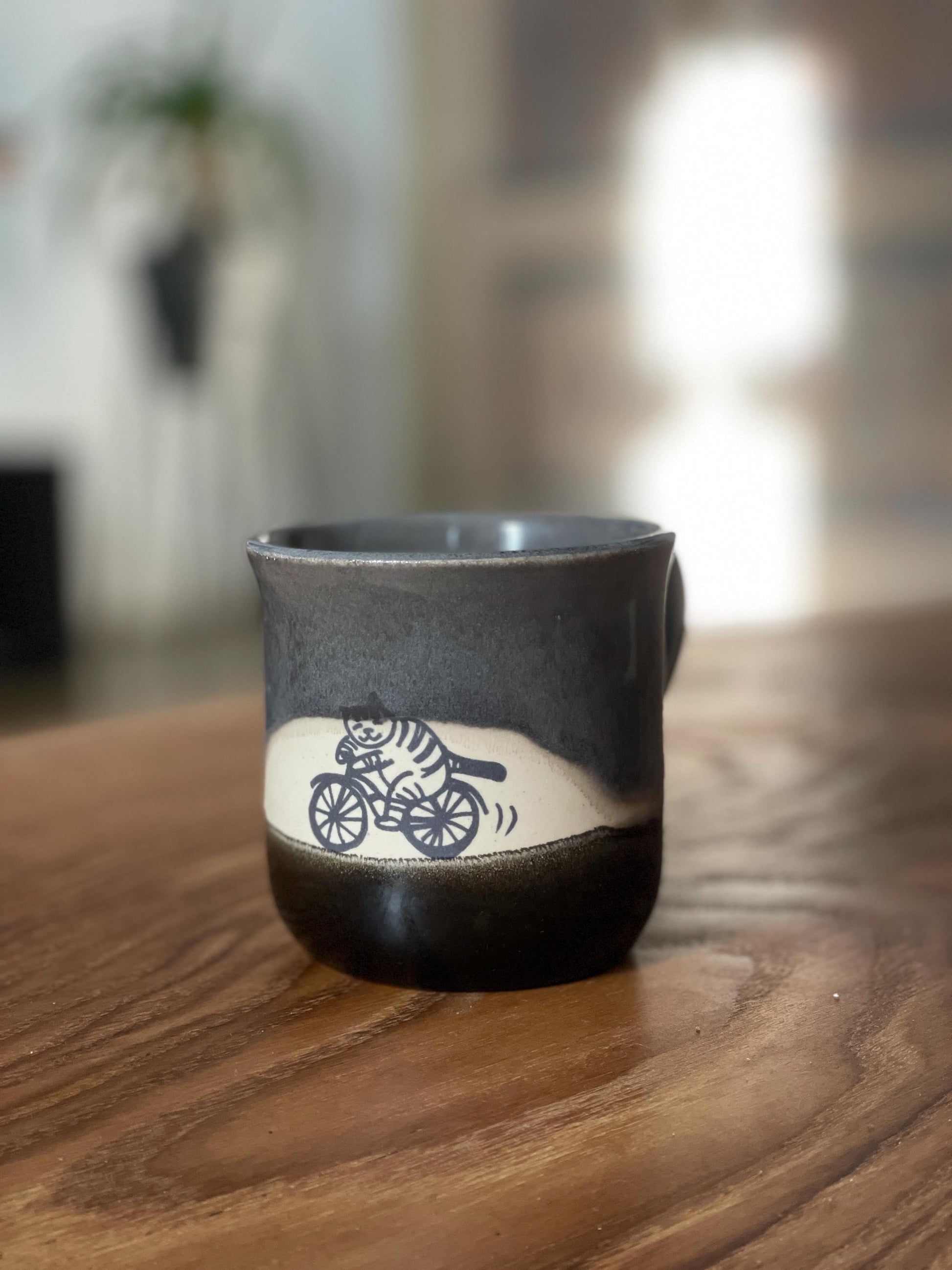 Šī krūzīte ir kā maza dienas deva prieka un humora! Kaķis, kas lec uz velosipēda, atgādina – dzīve ir pārāk īsa, lai tai nepievienotu mazliet trakuma un jautrības. Perfekta kafijai, tējai un smaidiem ik rītā. 🚲☕