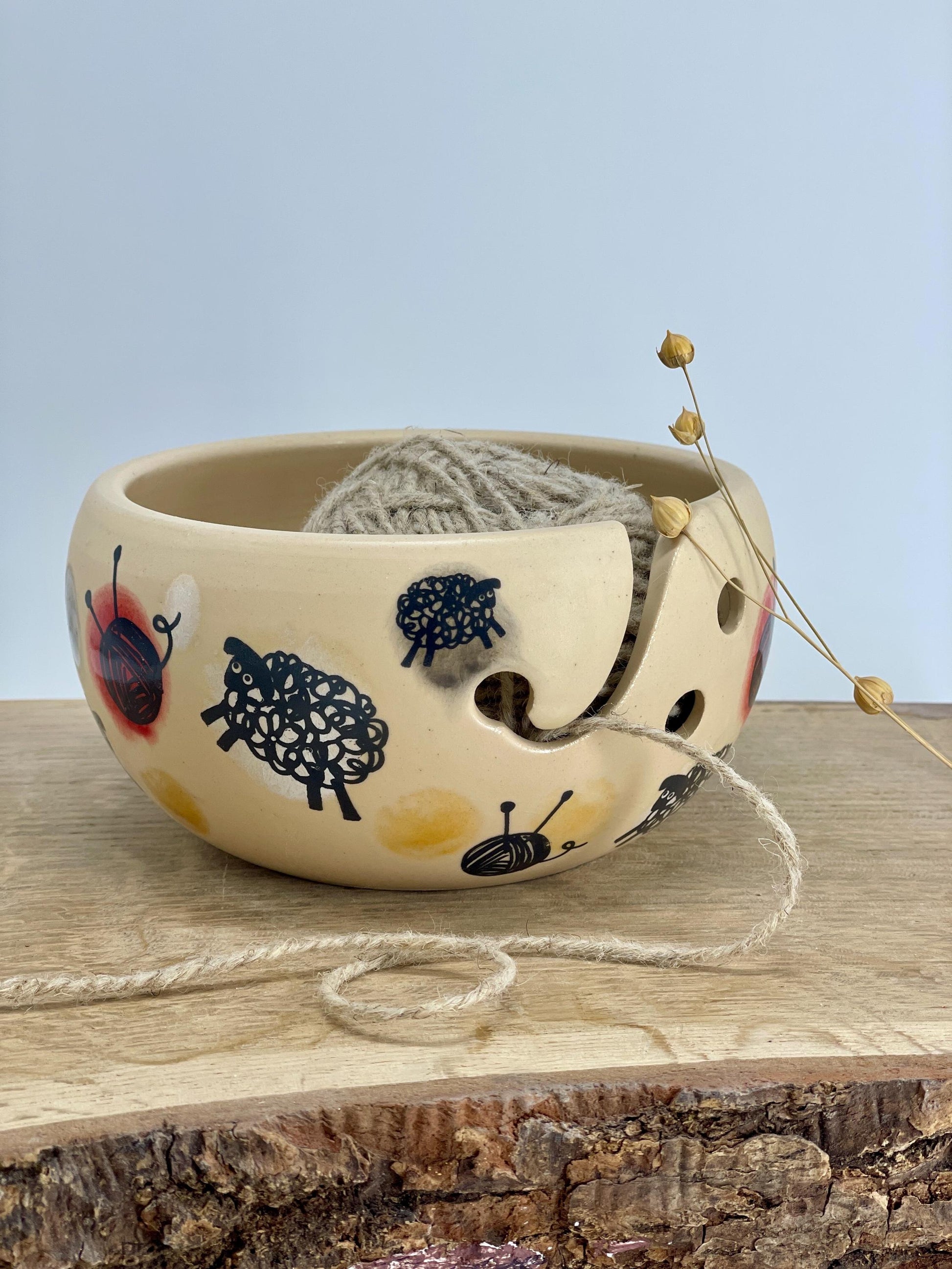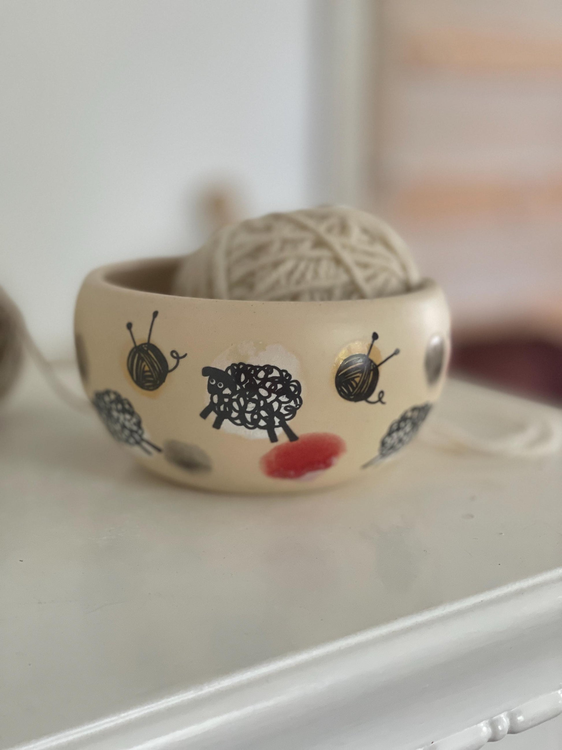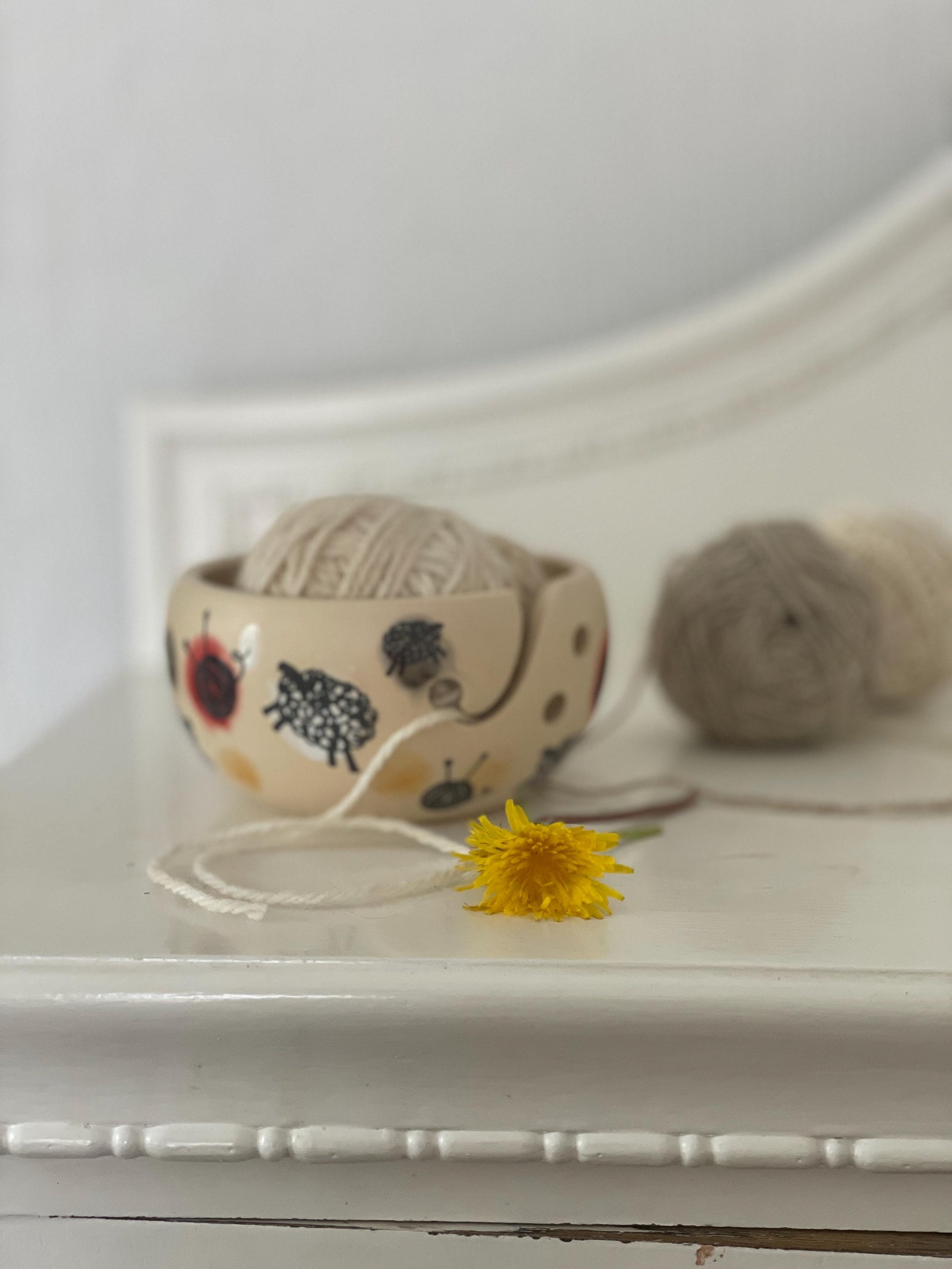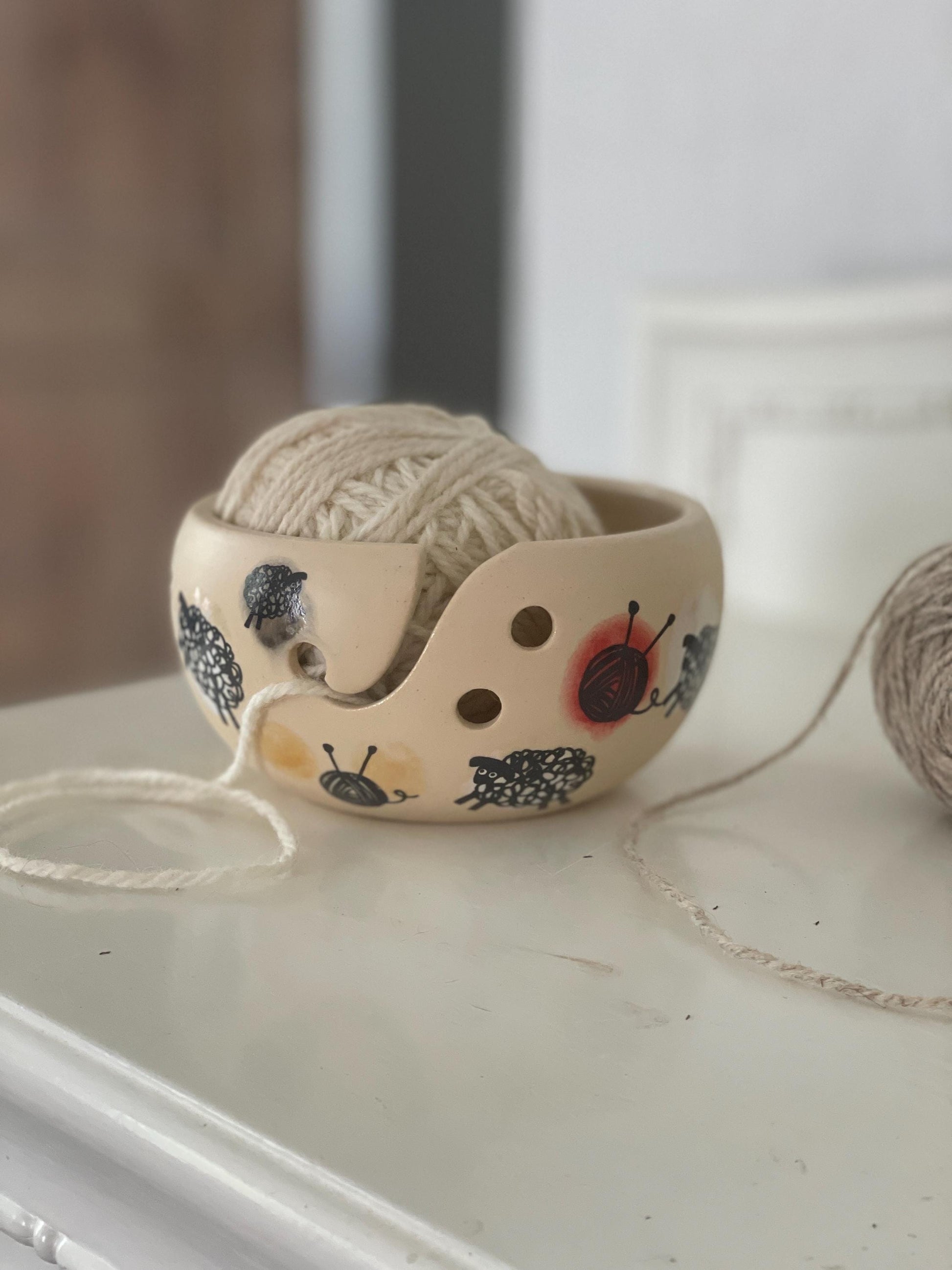 Šī bļodina palīdz savaldīt pavedienu. Tas iet caur speciālo iegriezumu un kamols nemuks projām.