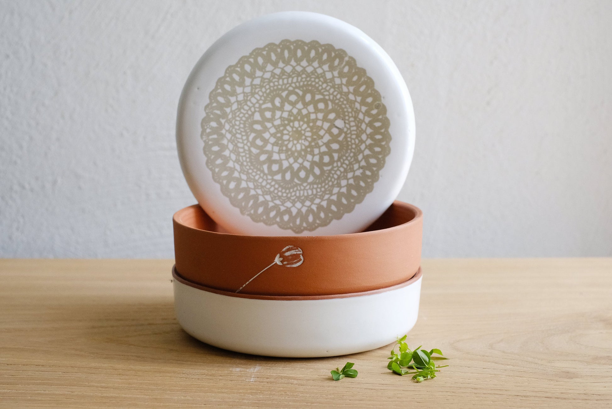 Šis ir dabisks, no māla veidots trauks, kas paredzēts sēklu diedzēšanai. Tas nodrošina ideālu vidi dīgšanai, pateicoties māla spējai uzturēt vienmērīgu mitrumu un gaisa cirkulāciju. Māls dabiski regulē mitruma līmeni – tas uzsūc lieko ūdeni un pakāpeniski to izdala, tādējādi novēršot sēklu pelēšanu vai izžūšanu.