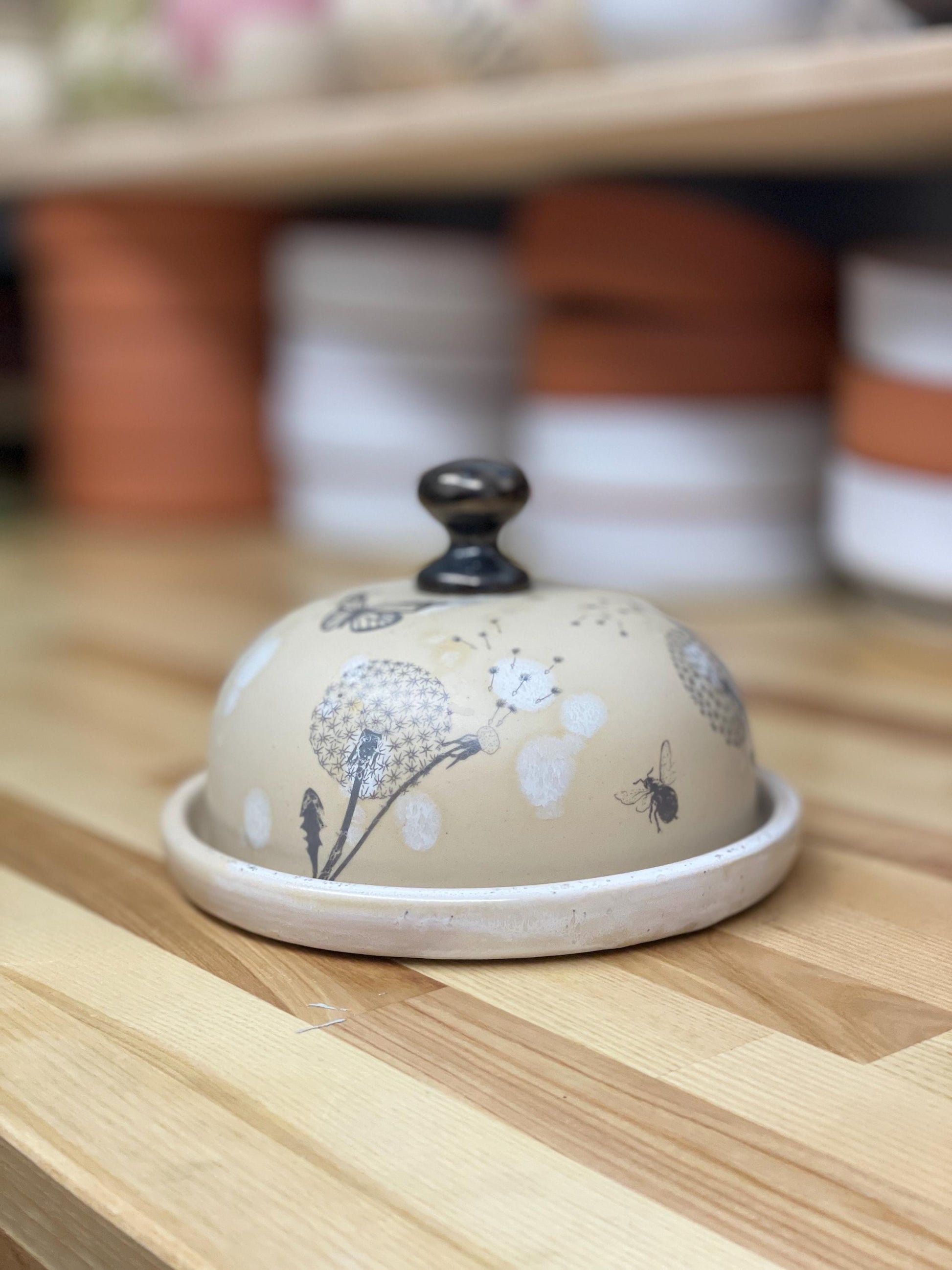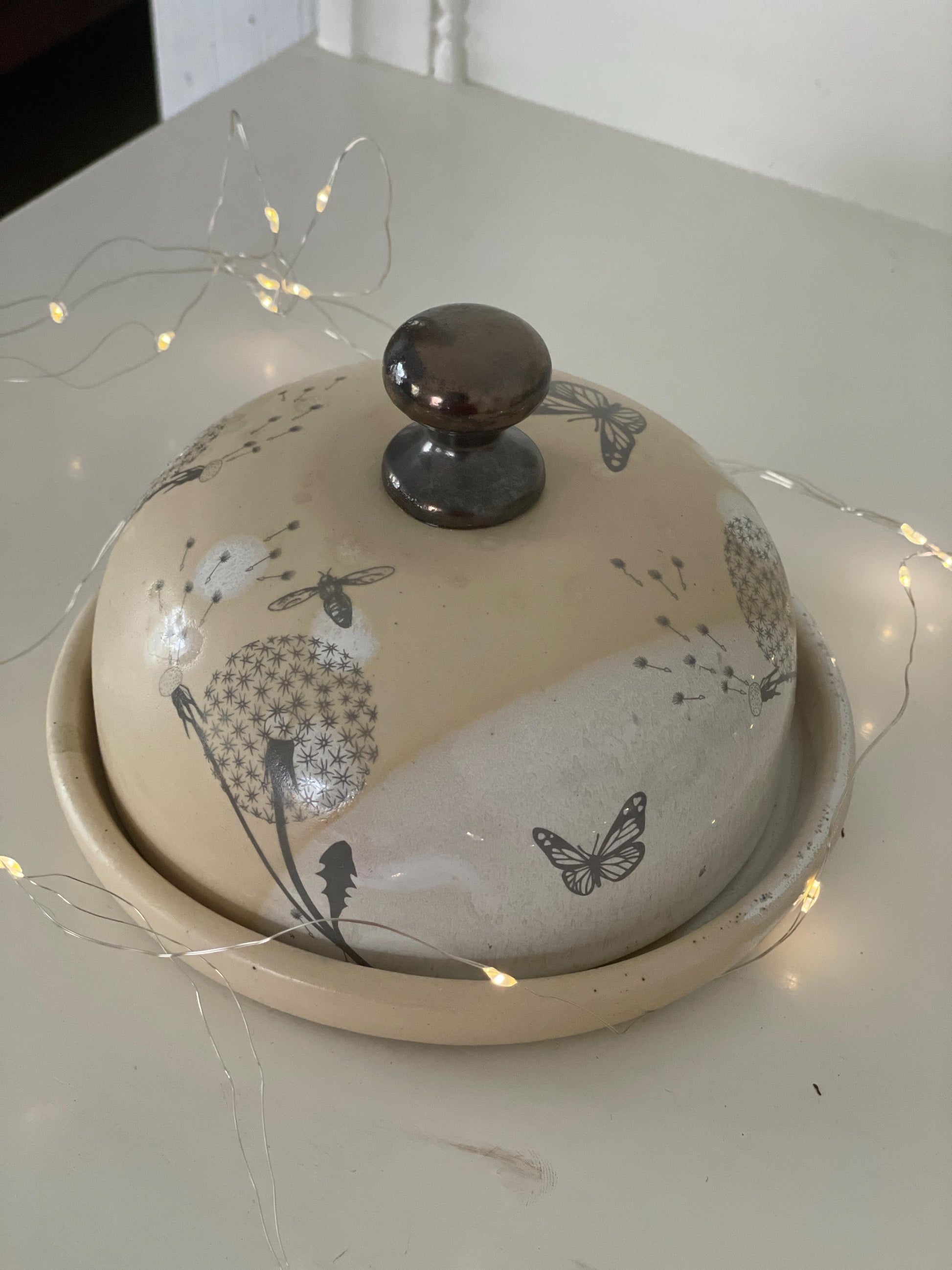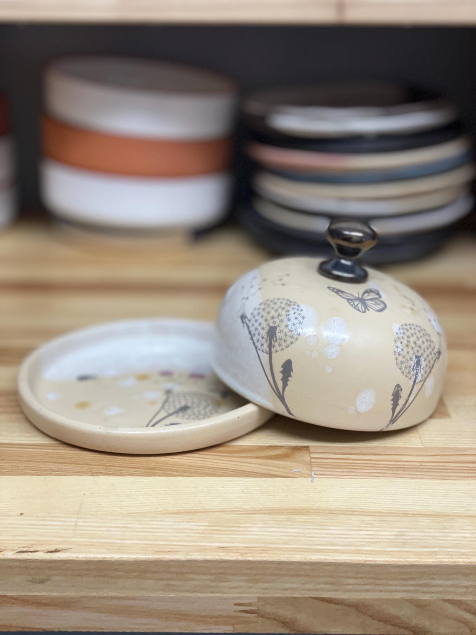 Klasiskais sviesta trauks ar paceļamu vāciņu. Der mūsu standarta sviesta izmēram, bet lieliski noder arī sieram.