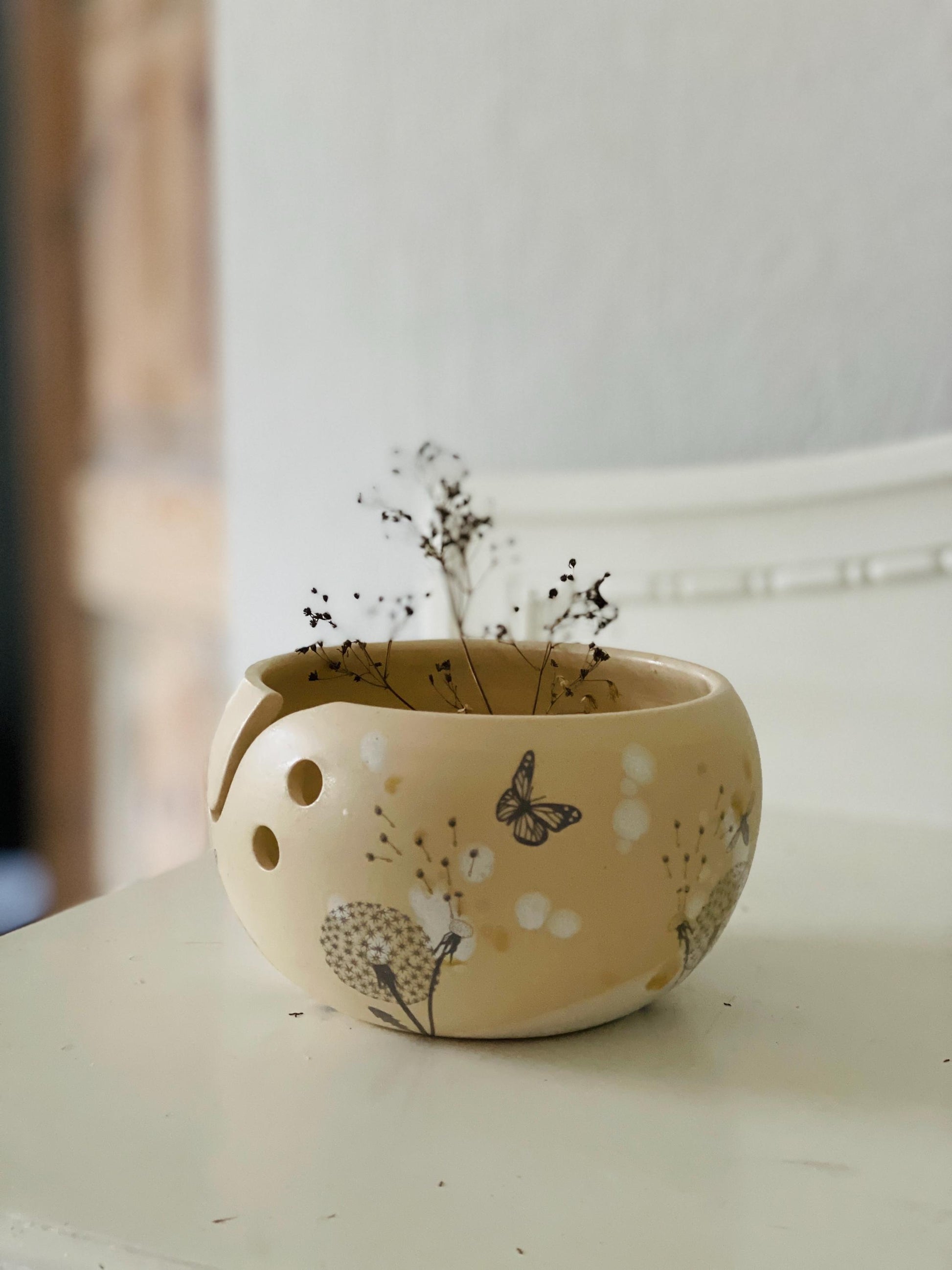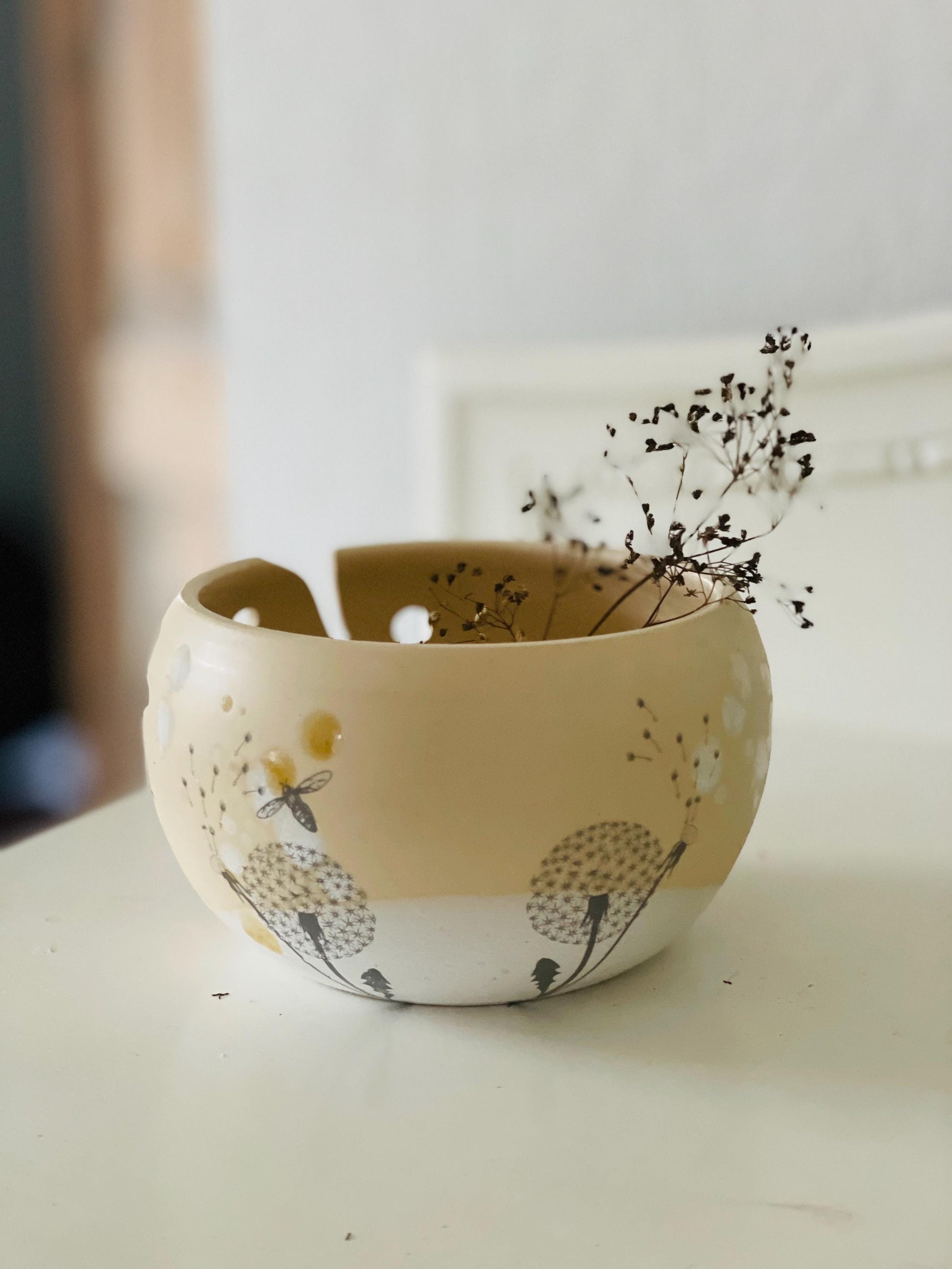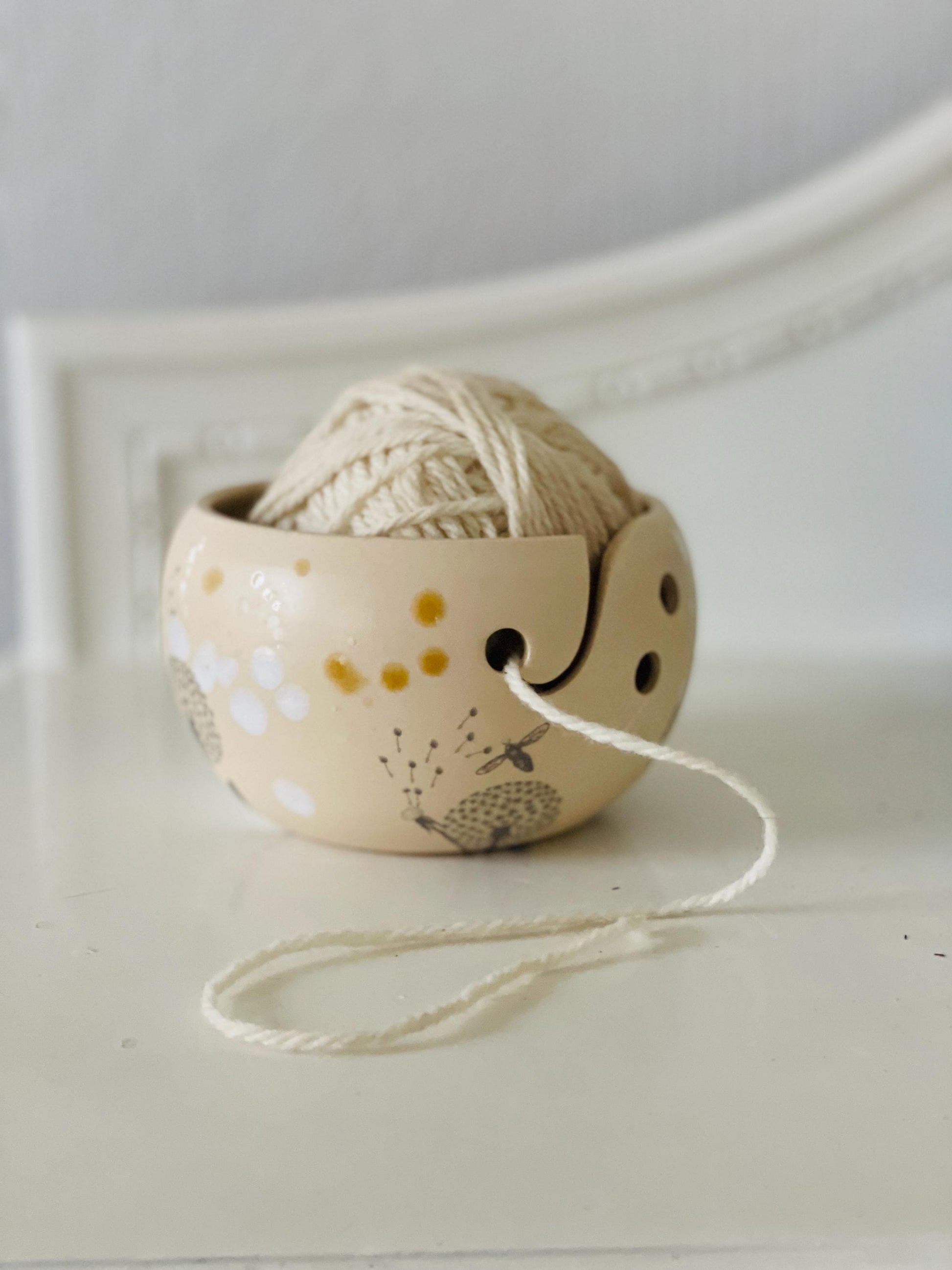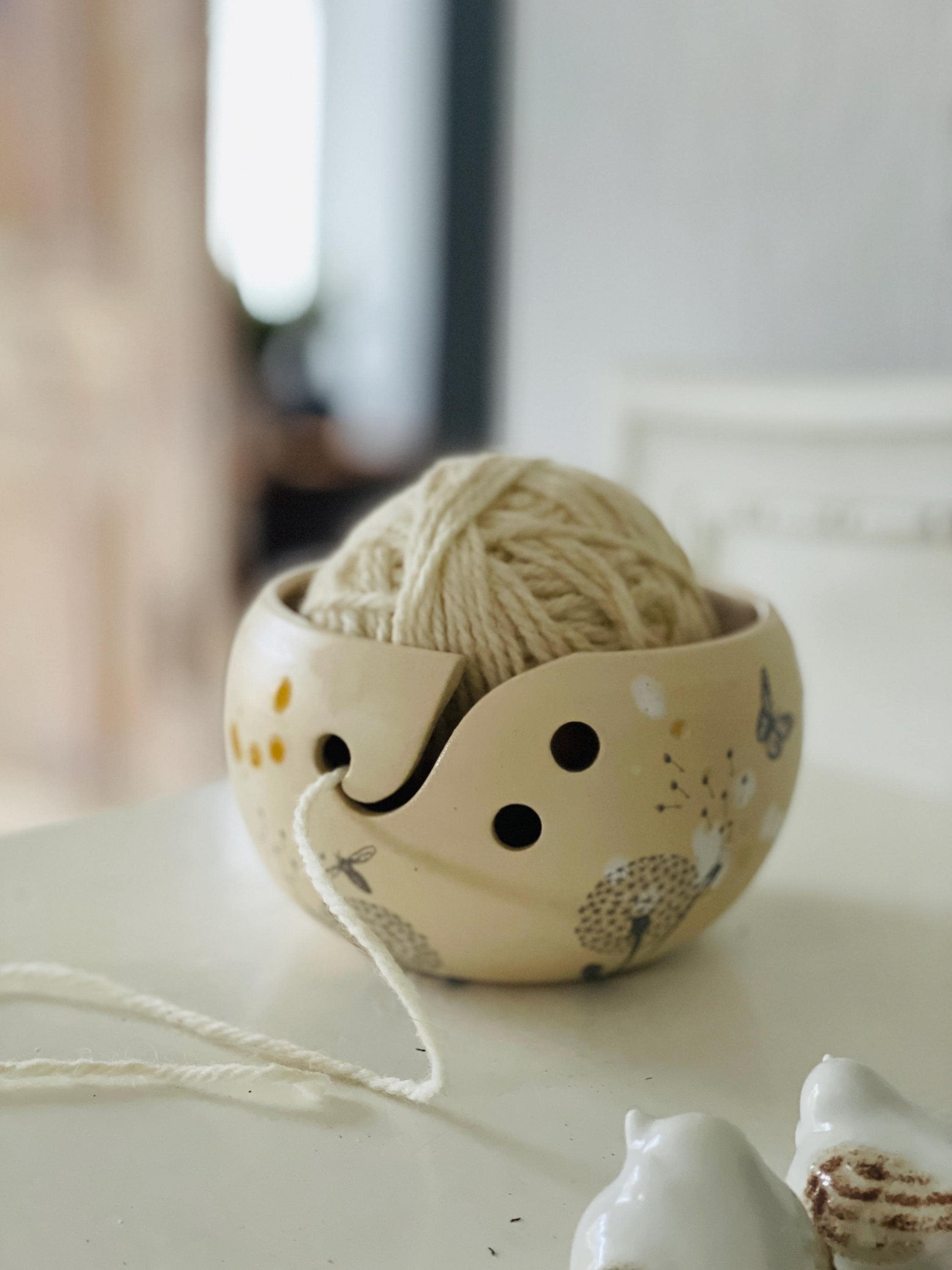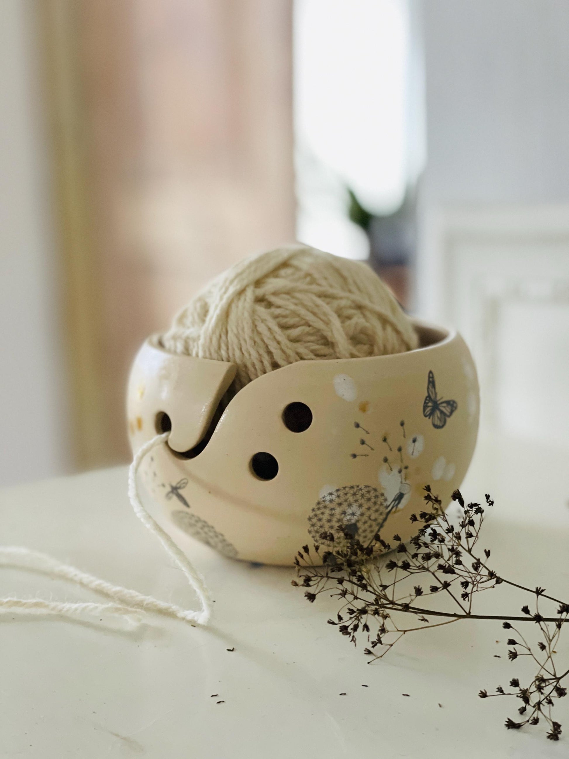 Šī bļodina palīdz savaldīt pavedienu. Tas iet caur speciālo iegriezumu un kamols nemuks projām.