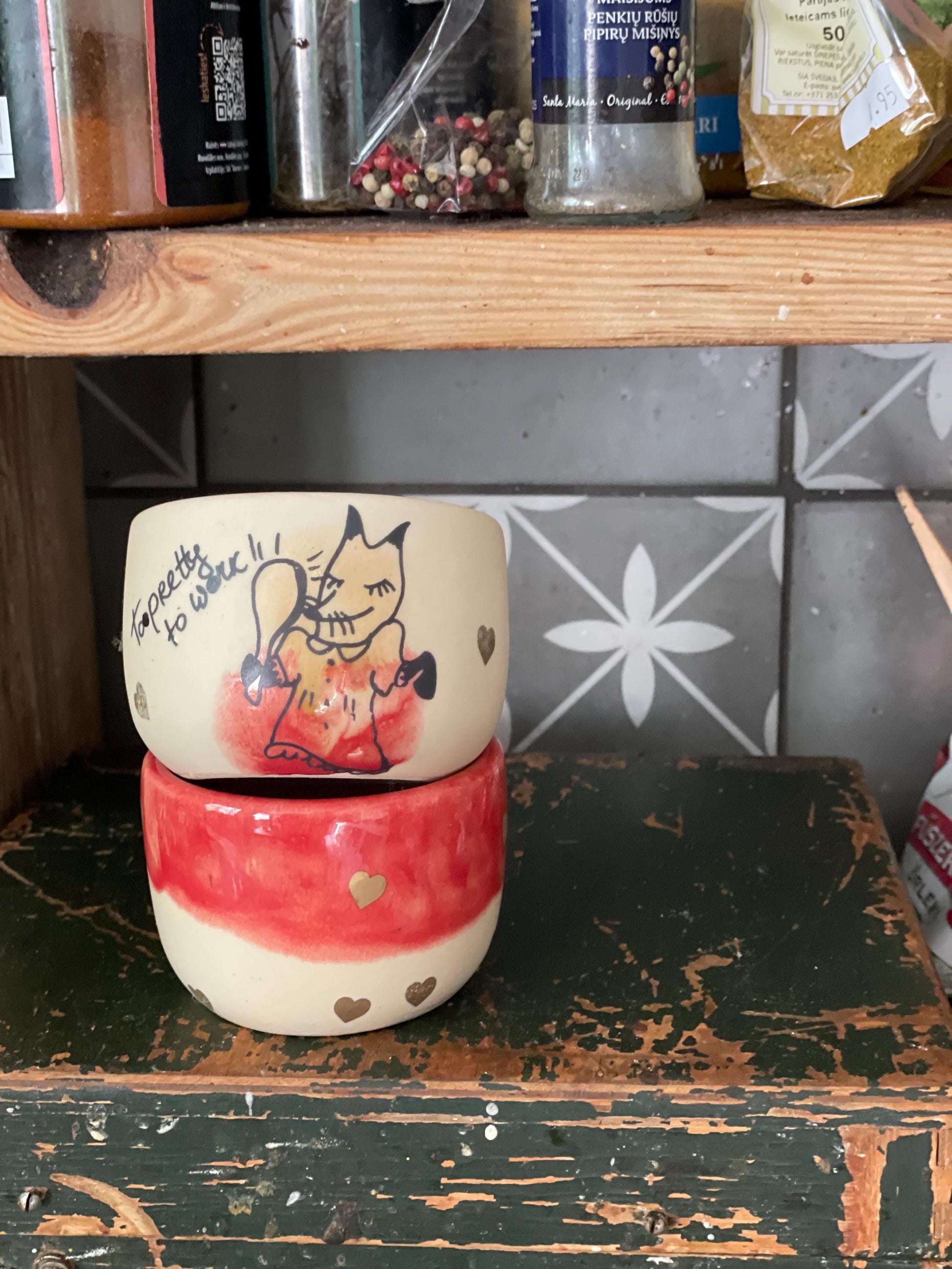 Tad notiek pēdējā apdedzināšana, un beidzot trauks ir gatavs. Mūsu trauki tiek dedzināti 1040 grādu temperatūrā. Trauki ir ļoti praktiski un labi lietojas.