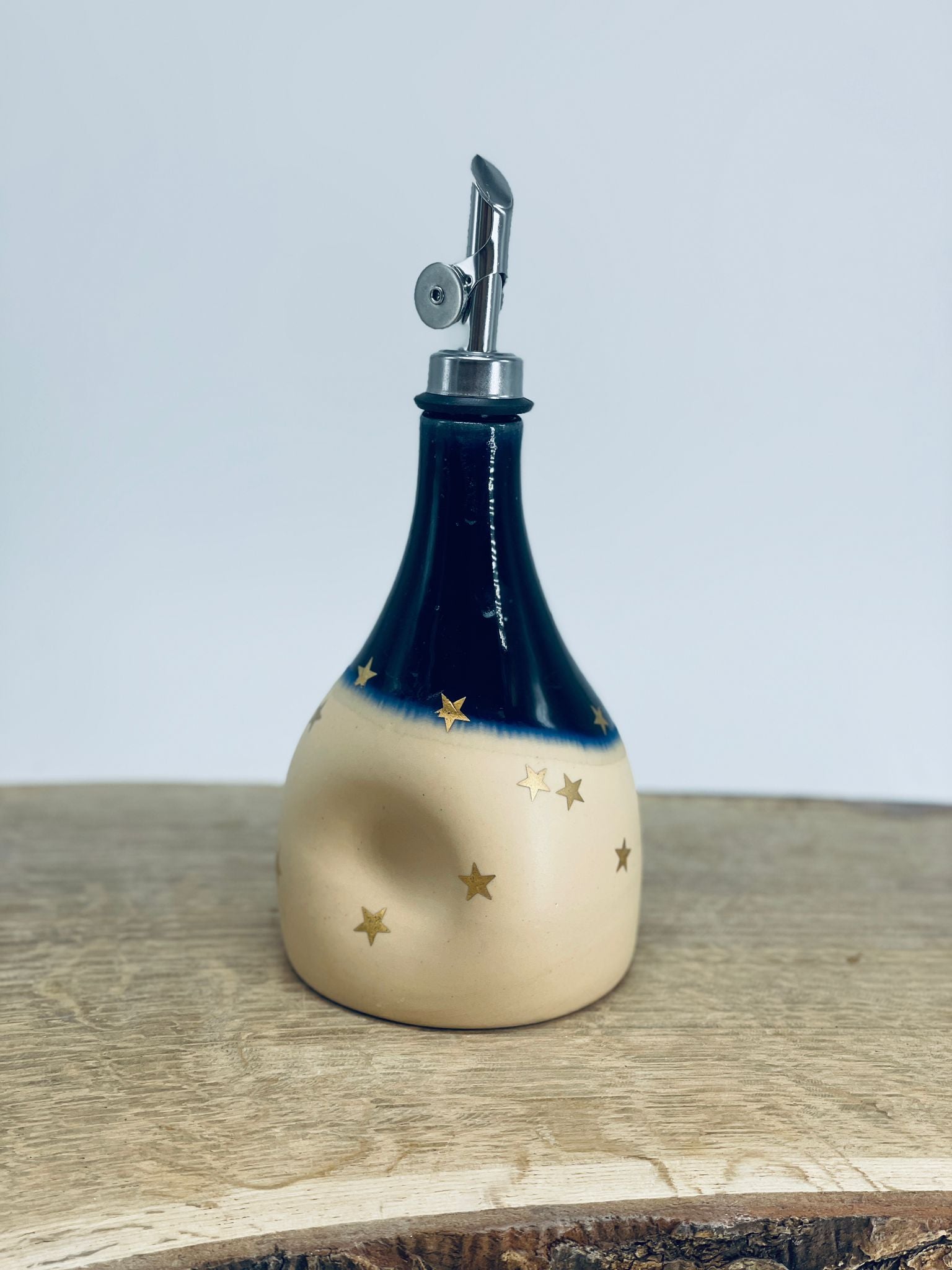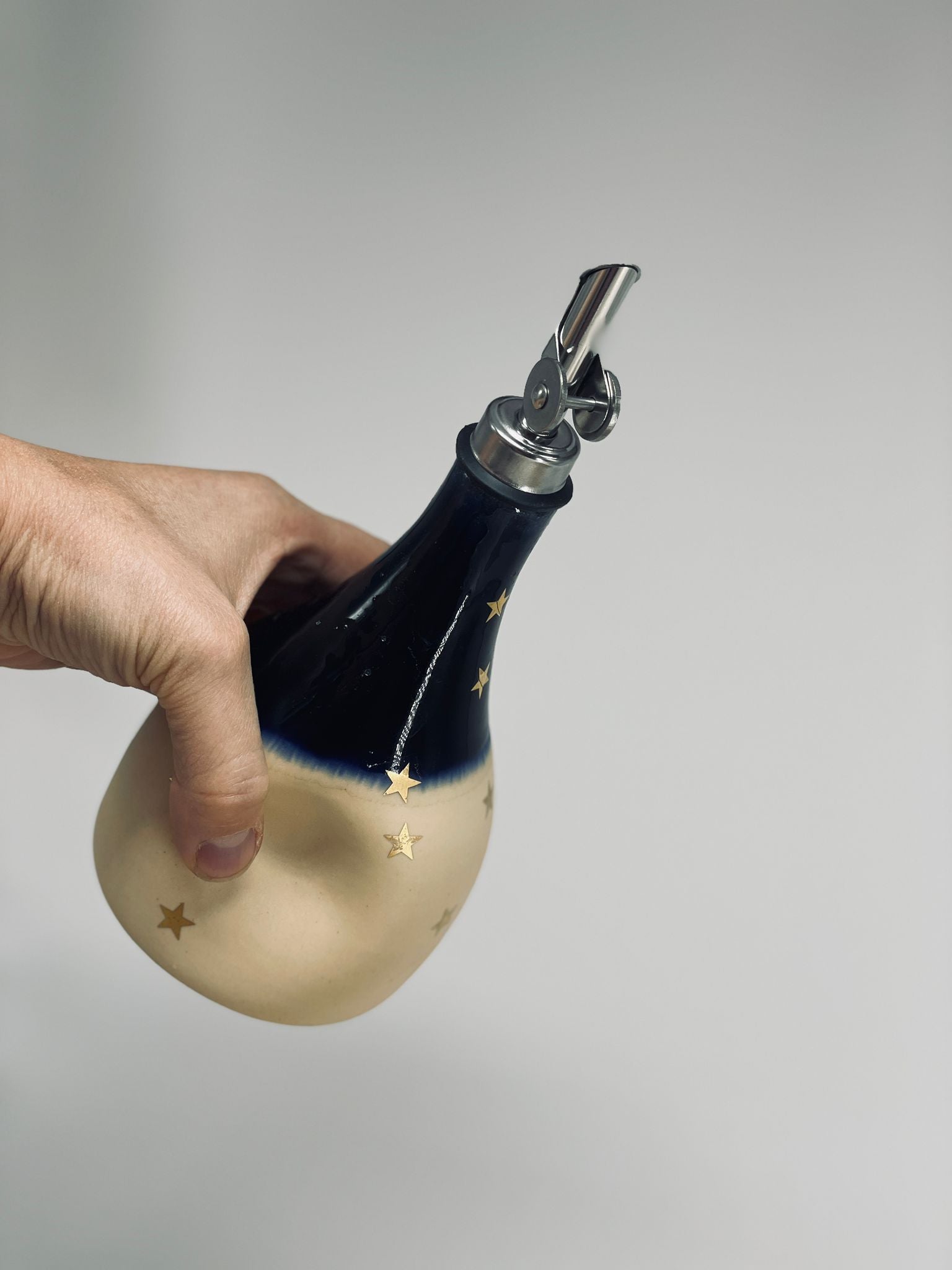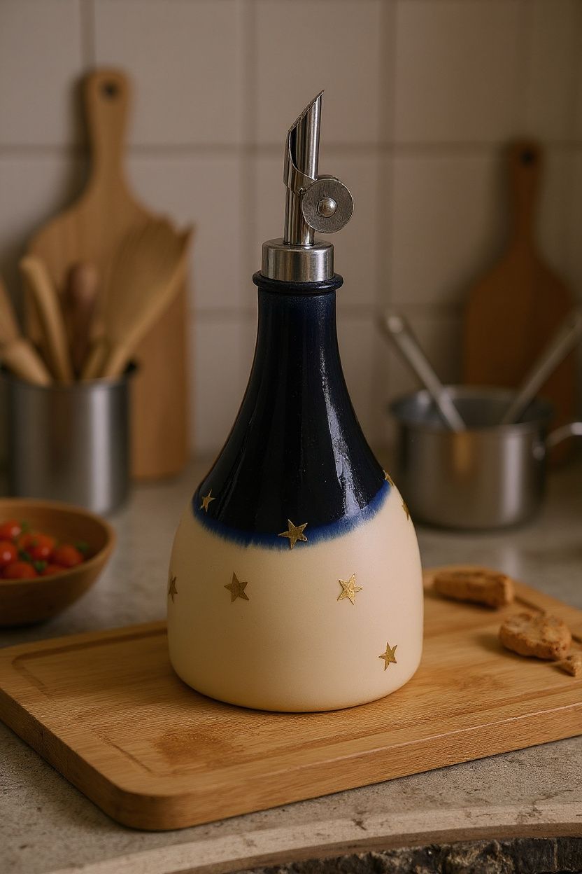 Tu droši vien esi dzirdējis, ka eļļa jāuzglabā tumšā traukā — citādi tā var oksidēties un kļūt rūgta. Šim eļļas traukam ir īpaši ērts satvēriens un lielisks dozators.