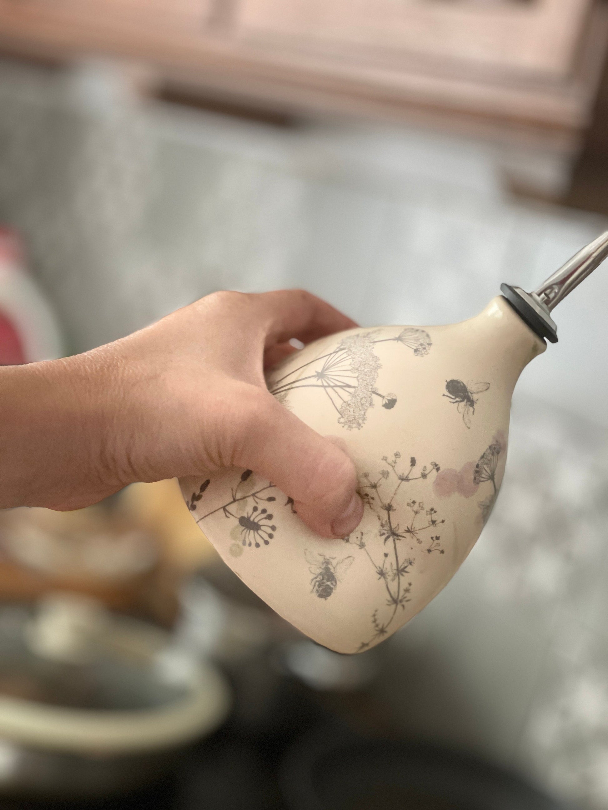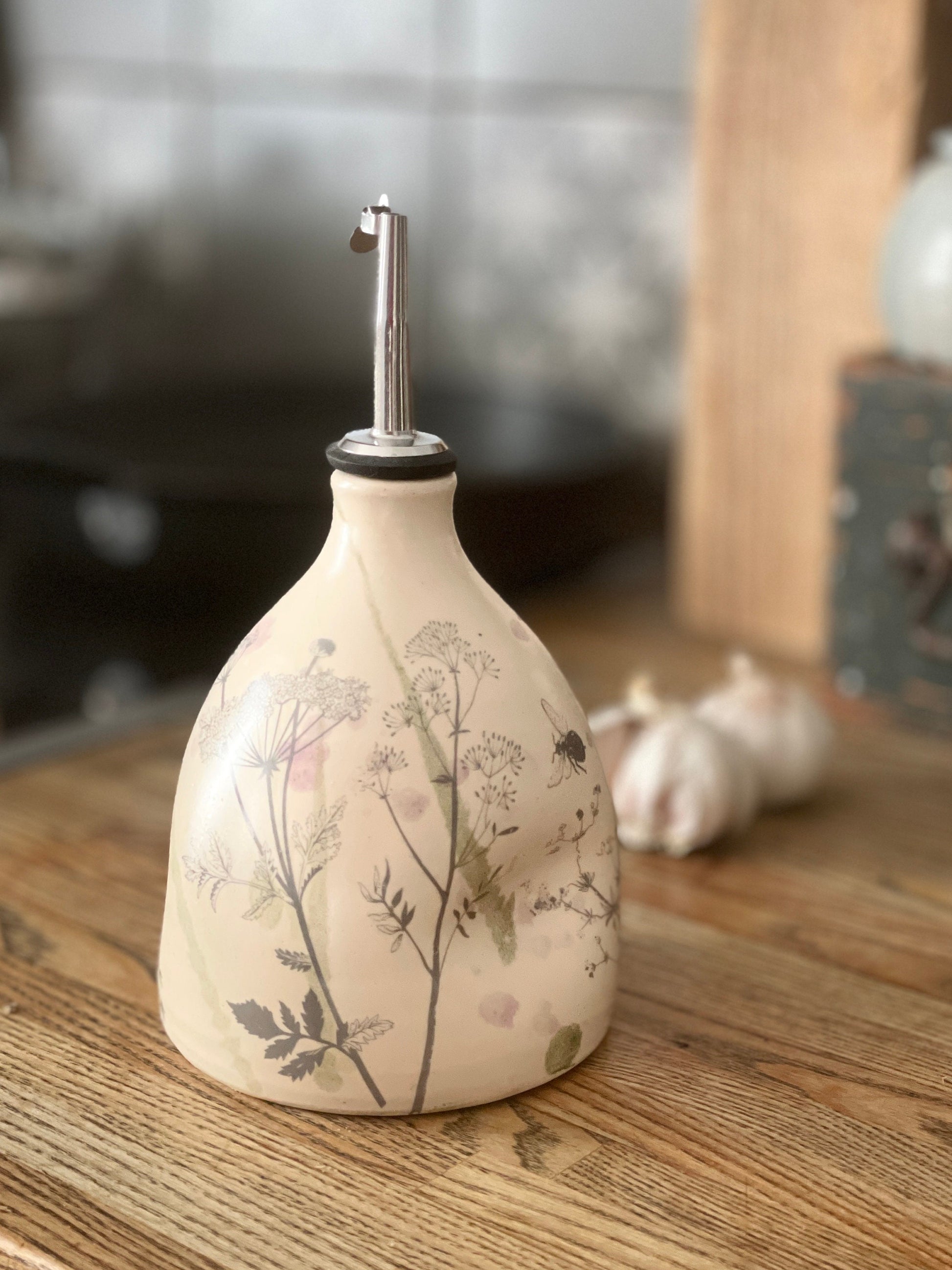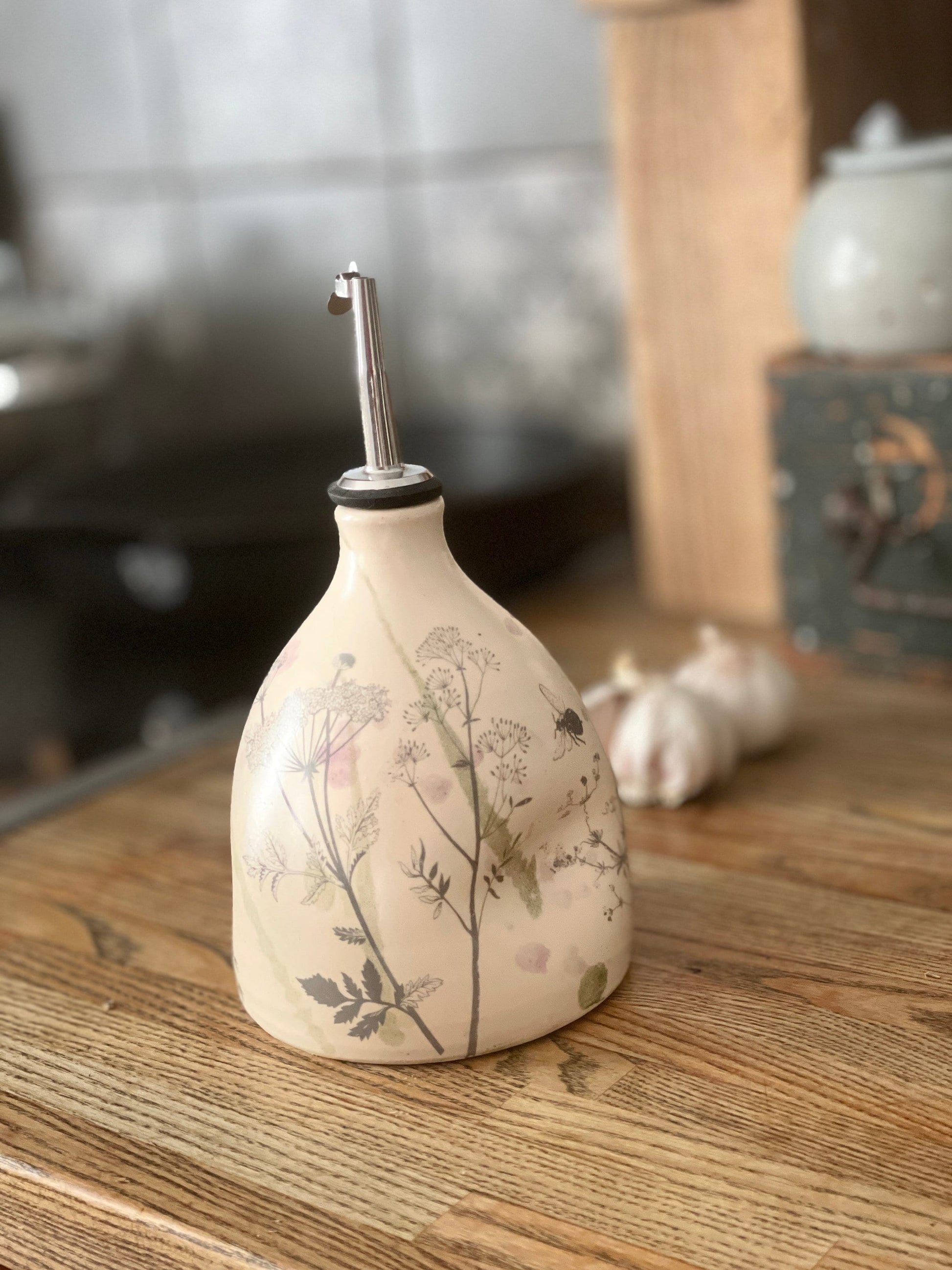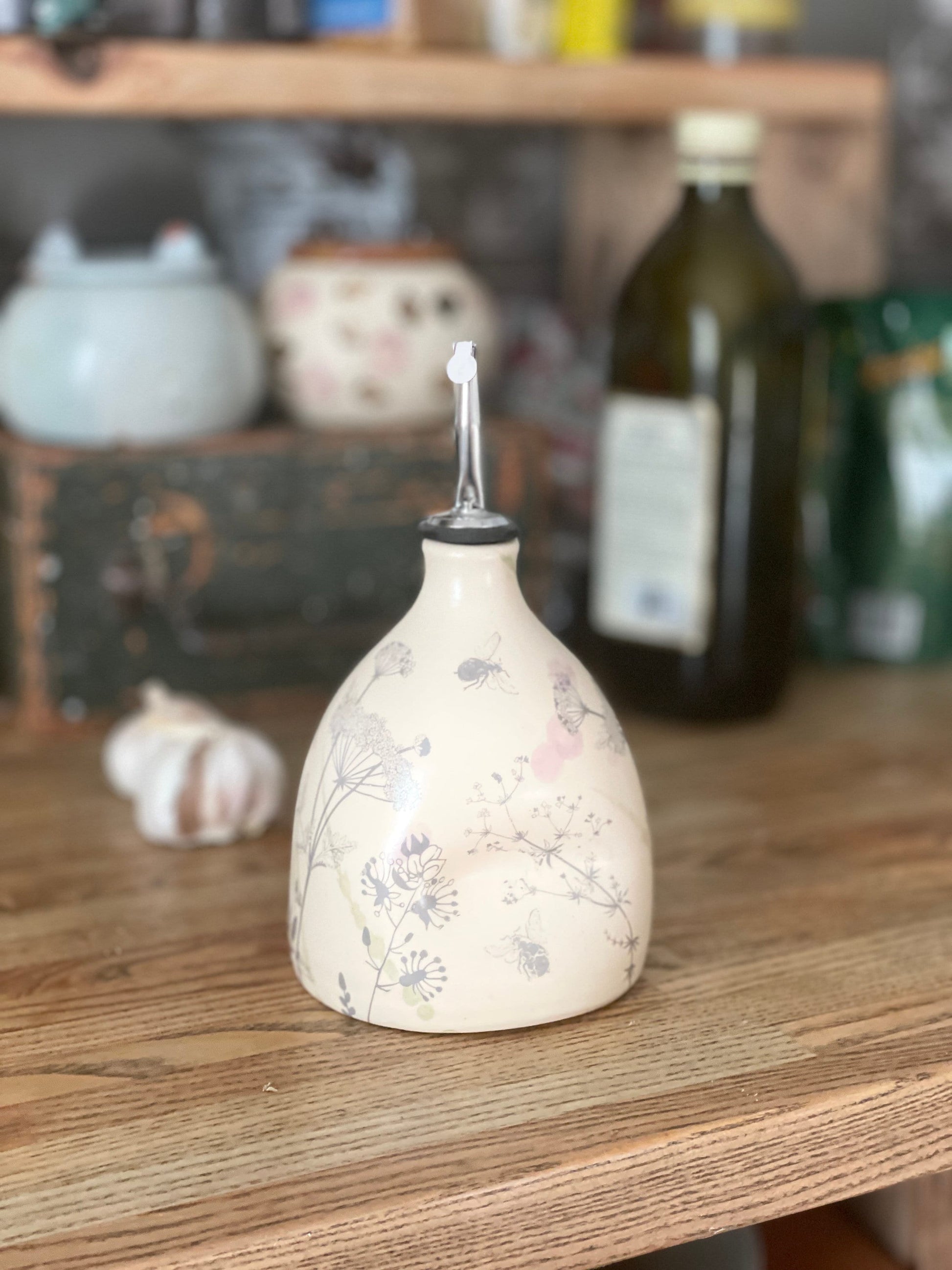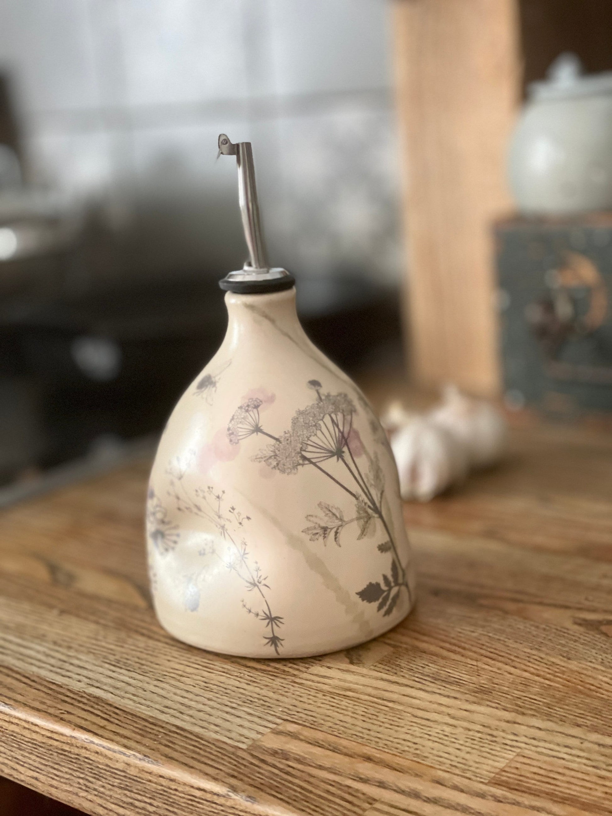 Tu droši vien esi dzirdējis, ka eļļa jāuzglabā tumšā traukā — citādi tā var oksidēties un kļūt rūgta. Šim eļļas traukam ir īpaši ērts satvēriens un lielisks dozators.