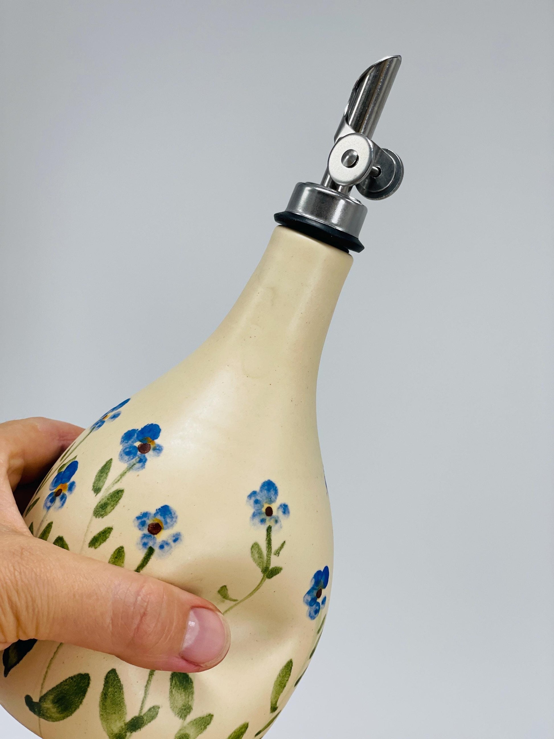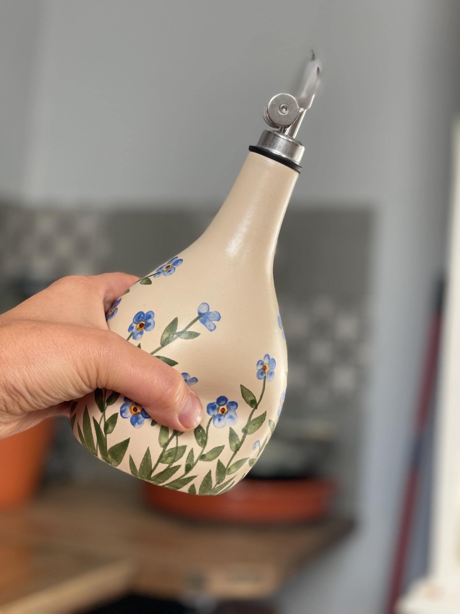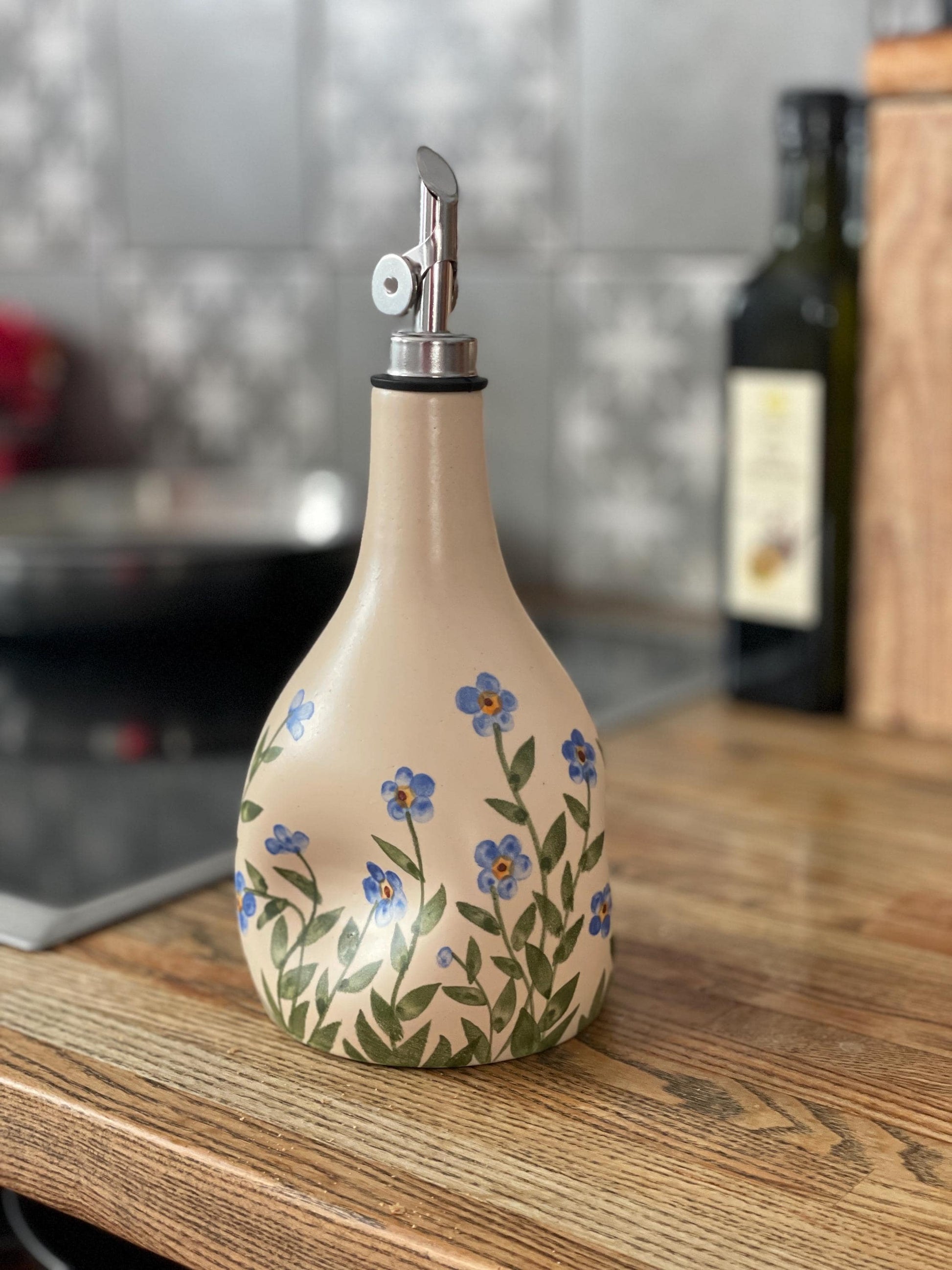 Tu droši vien esi dzirdējis, ka eļļa jāuzglabā tumšā traukā — citādi tā var oksidēties un kļūt rūgta. Šim eļļas traukam ir īpaši ērts satvēriens un lielisks dozators.