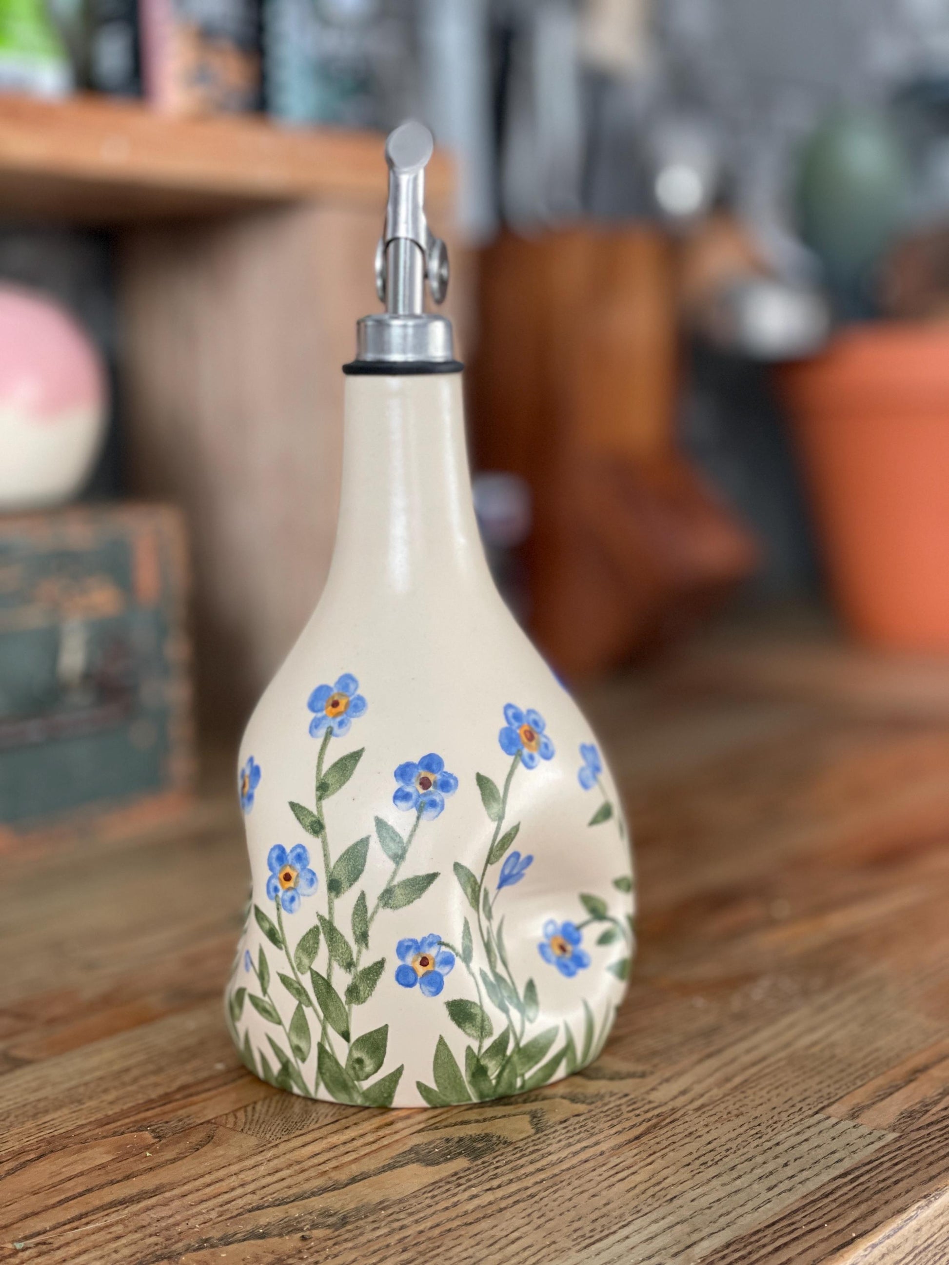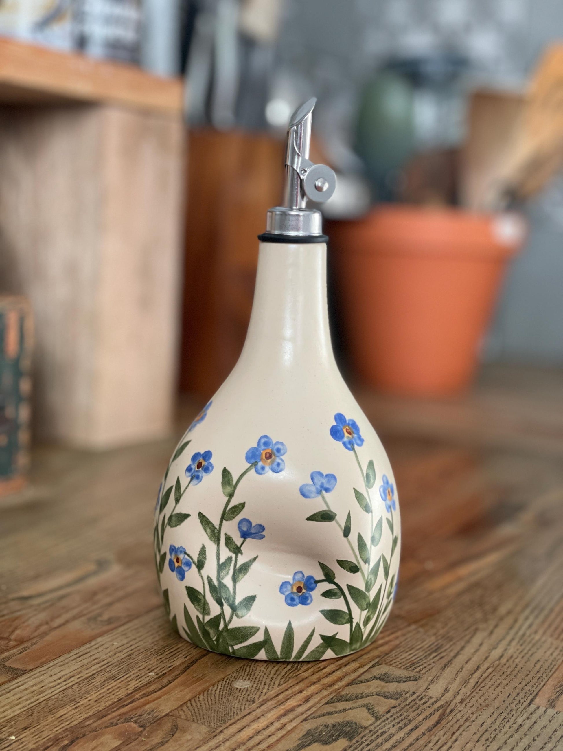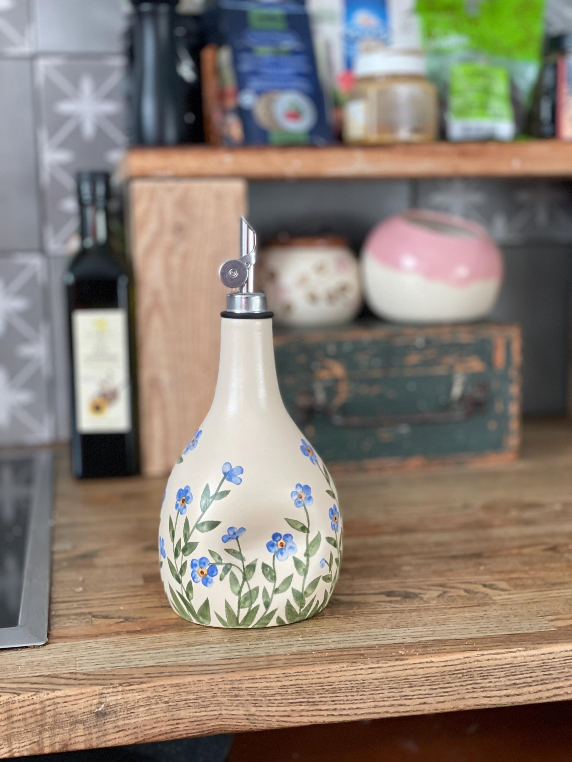 Tu droši vien esi dzirdējis, ka eļļa jāuzglabā tumšā traukā — citādi tā var oksidēties un kļūt rūgta. Šim eļļas traukam ir īpaši ērts satvēriens un lielisks dozators.