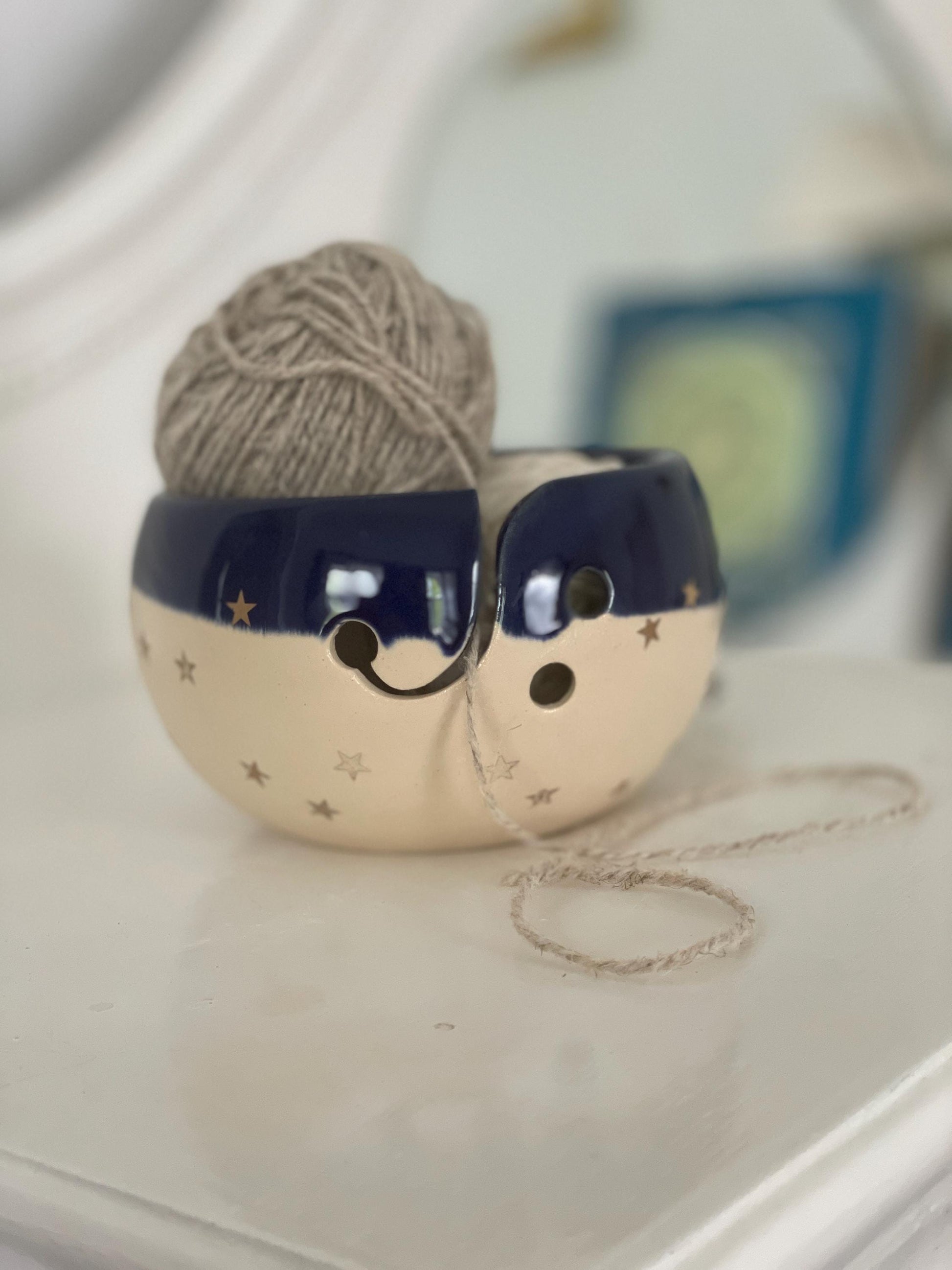Šī bļodina palīdz savaldīt pavedienu. Tas iet caur speciālo iegriezumu un kamols nemuks projām.