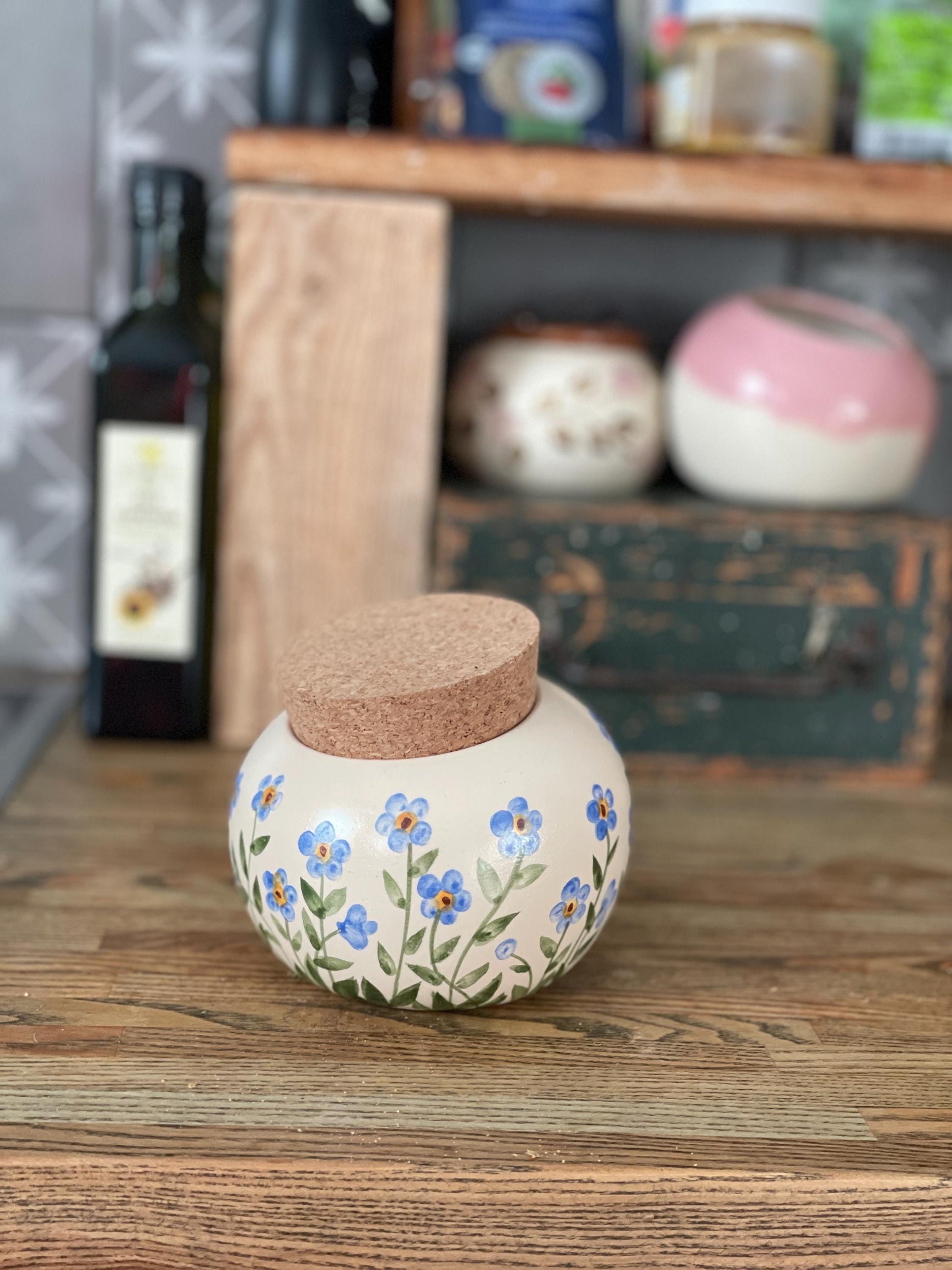 Sāls pagrabs, Sāls cūka Sāls glabātājs, keramikas sāls pods, neaizmirstulītes