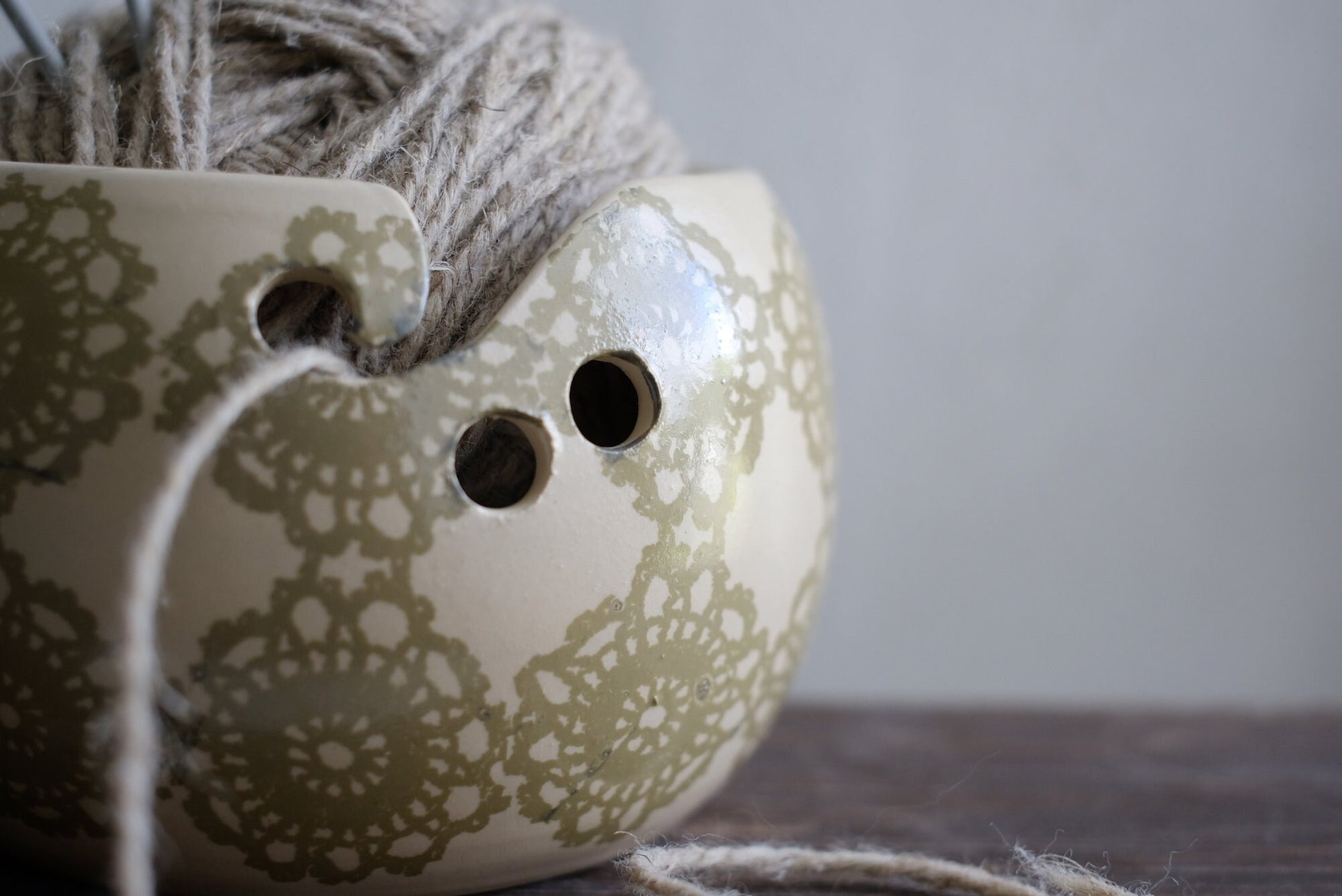 Šī bļodina palīdz savaldīt pavedienu. Tas iet caur speciālo iegriezumu un kamols nemuks projām.