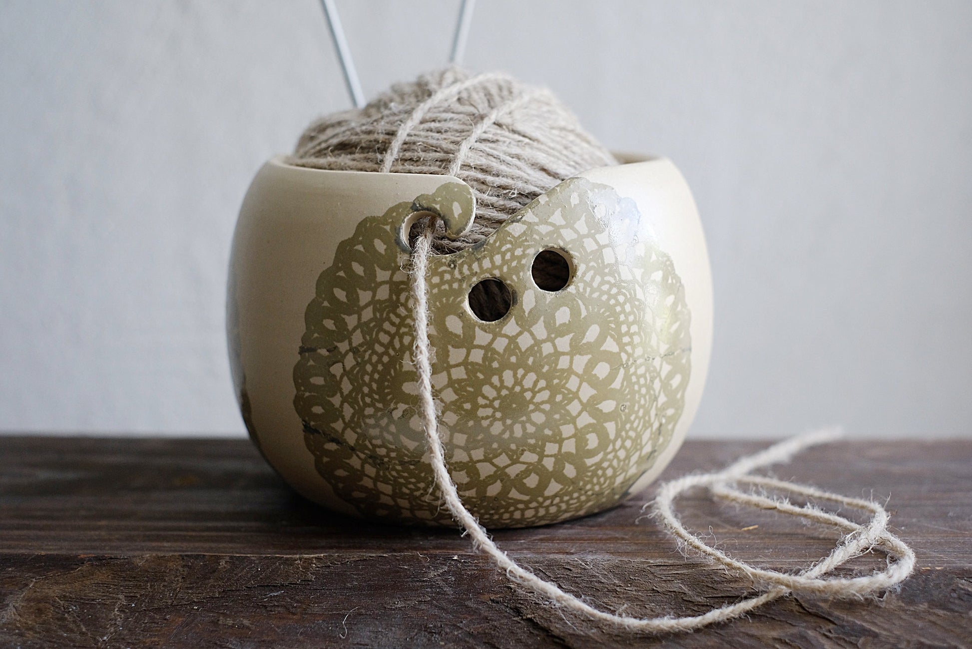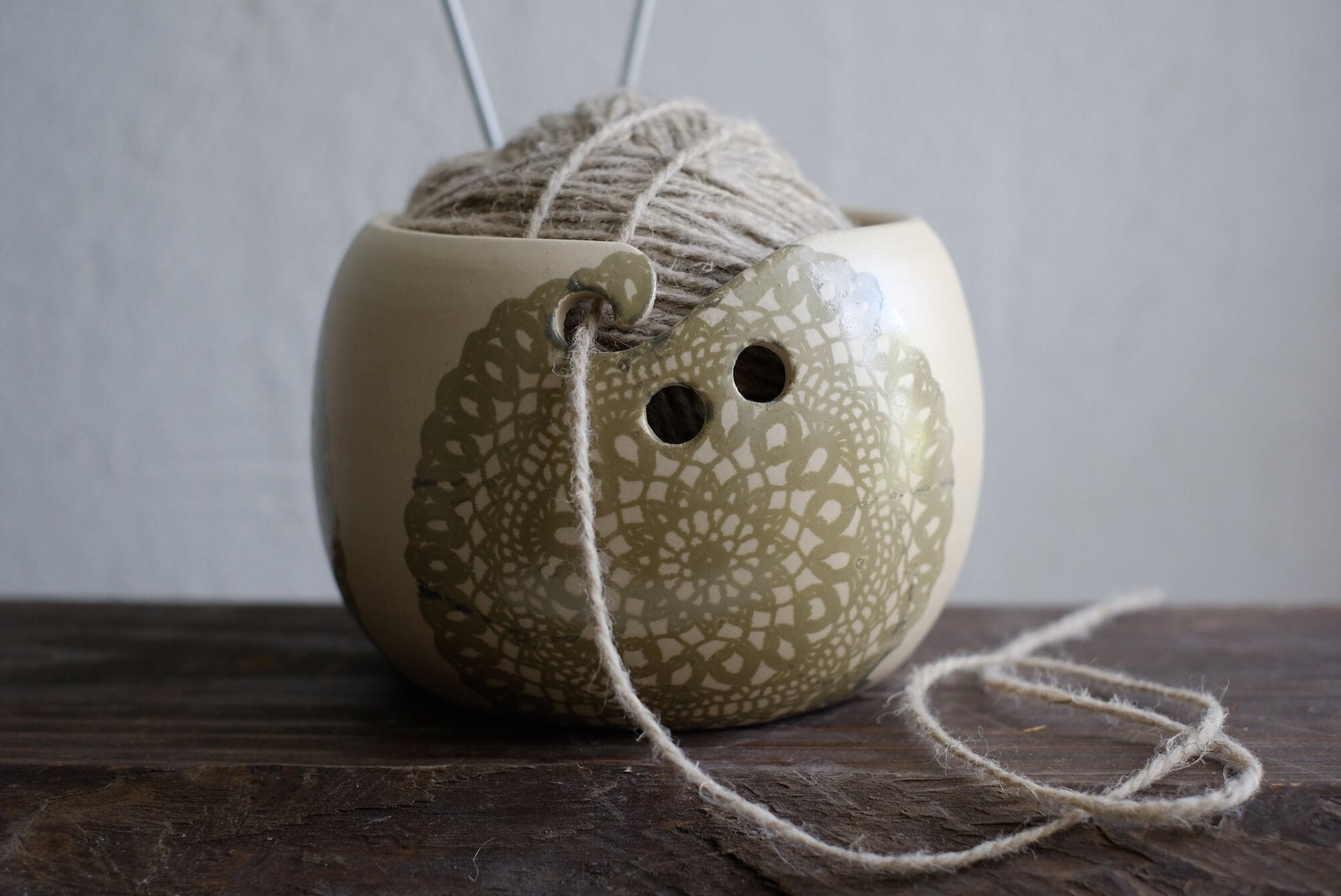 Šī bļodina palīdz savaldīt pavedienu. Tas iet caur speciālo iegriezumu un kamols nemuks projām.